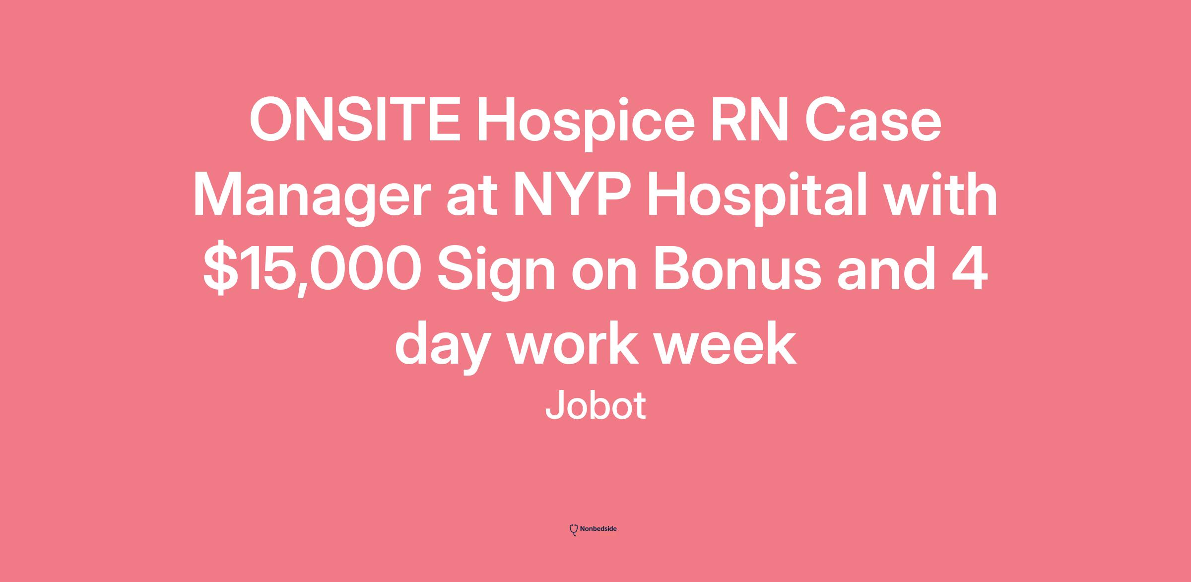 Candidates with experience in Hospice, Palliative Care, homecare, Oncology, Infusion, Med Surg or Telemetry a BIG PLUS!