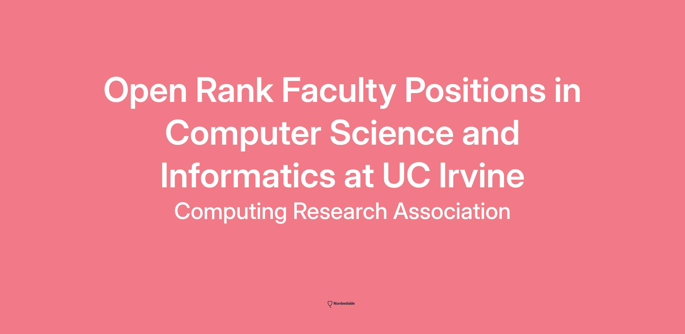 The Donald Bren School of Information and Computer Sciences at the University of California, Irvine invites applications for three tenure-track/tenured assistant, associate, or full professor positions, starting July 1, 2026.