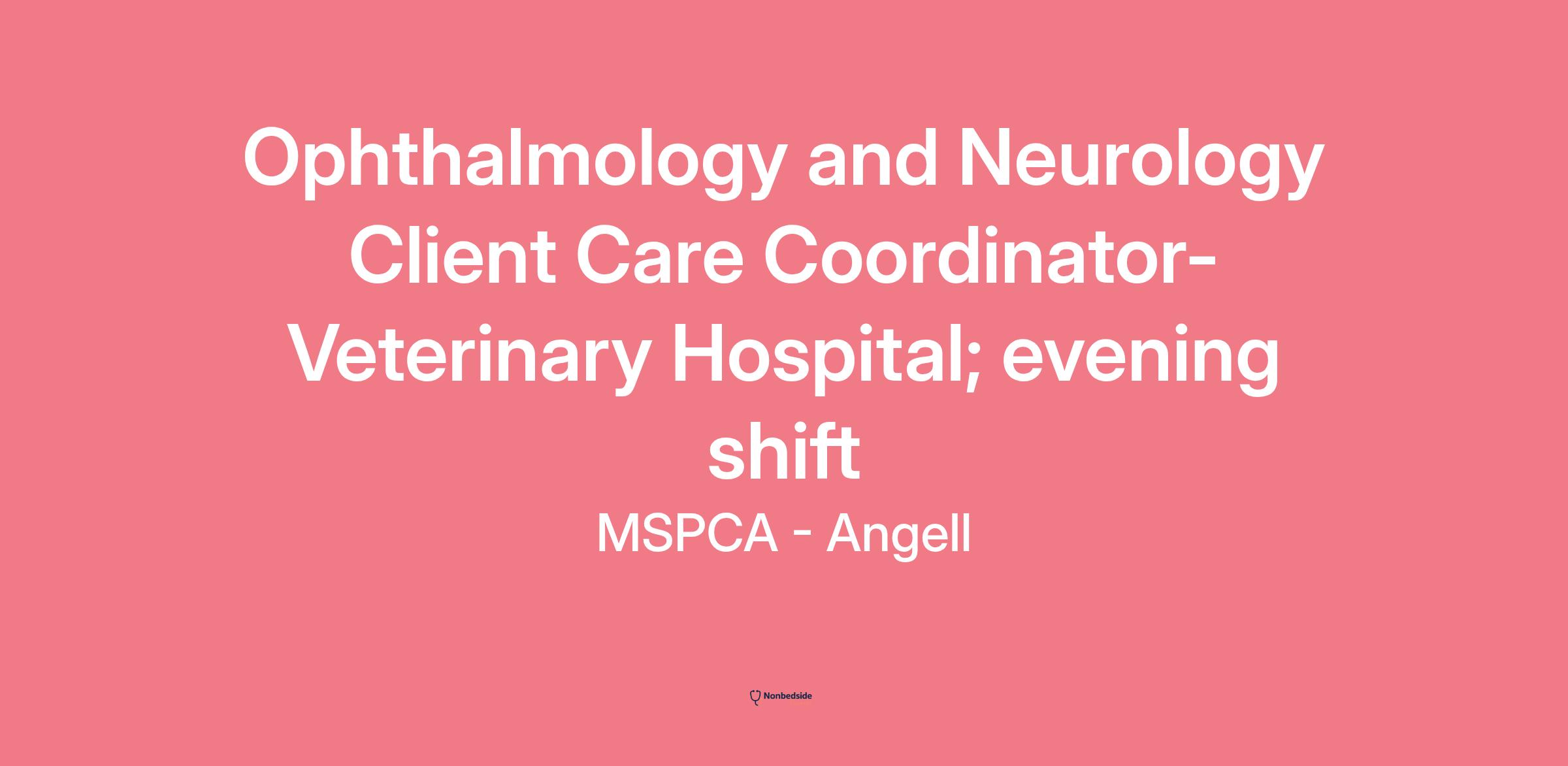 This Client Care Coordinator position is an essential part of our Ophthalmology and Neurology services. In this specialized role, you will work collaboratively with our doctors, technicians, and support staff in our Ophthalmology and Neurology departments to ensure seamless delivery of excellent client service while a pet is hospitalized. This impactful role provides daily opportunity to make a positive difference in the quality of life of our patients and clients. The Coordinator will act as an integral point person for both clients and veterinary staff; liaising information, facilitating patient movement within the hospital, and providing our clients with a valuable resource during their pet’s hospitalization. Ideal applicants will have at least 2 years experience in a hands-on and/or client service role in a veterinary facility, animal shelter/humane society, or other animal related field. Relative experience in a human medical position is also welcomed. Substitutable experience also includes 2 years in the hospitality or service industry.