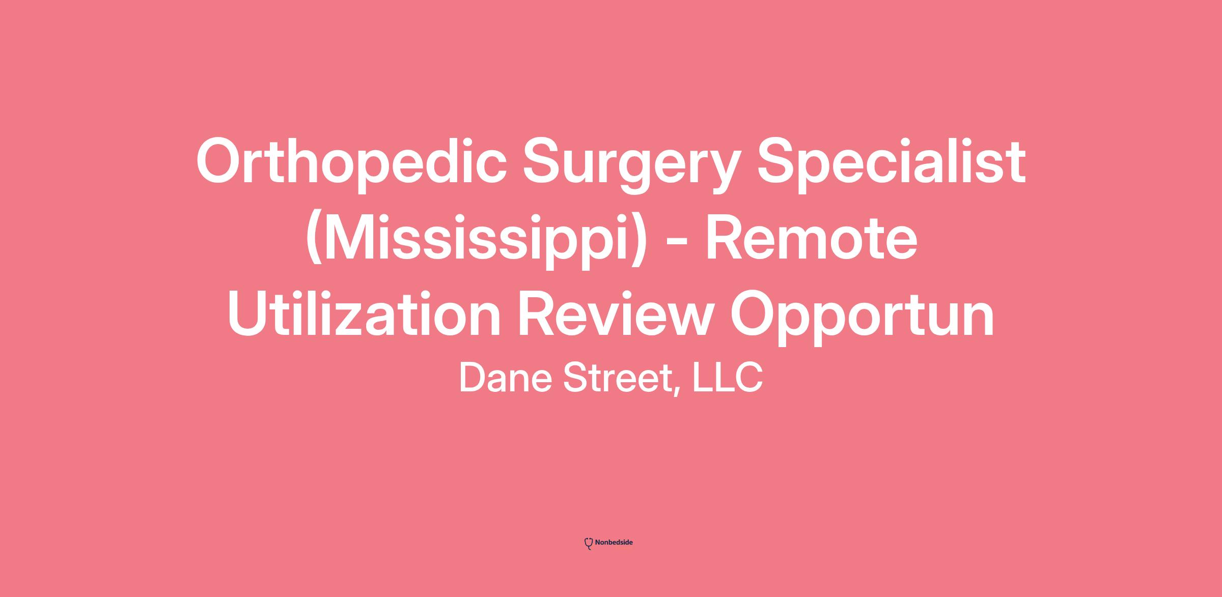 Dane Street, a nationally recognized Independent Review Organization (IRO), is expanding its panel of Physician Reviewers . We are currently seeking Board-Certified Orthopedic Surgeons (Spine experience preferred) licensed in Mississippi to perform Utilization Reviews .