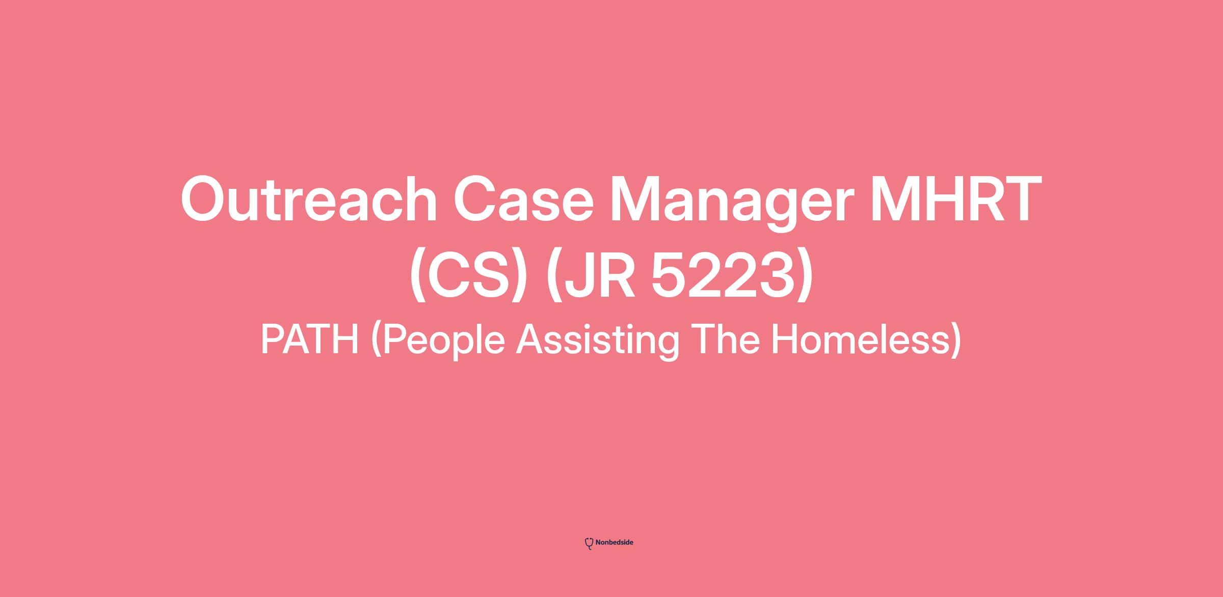 PATH is seeking candidates passionate about helping others make a positive change in their lives to join our Outreach Services team as the Outreach Case Manager MHRT.