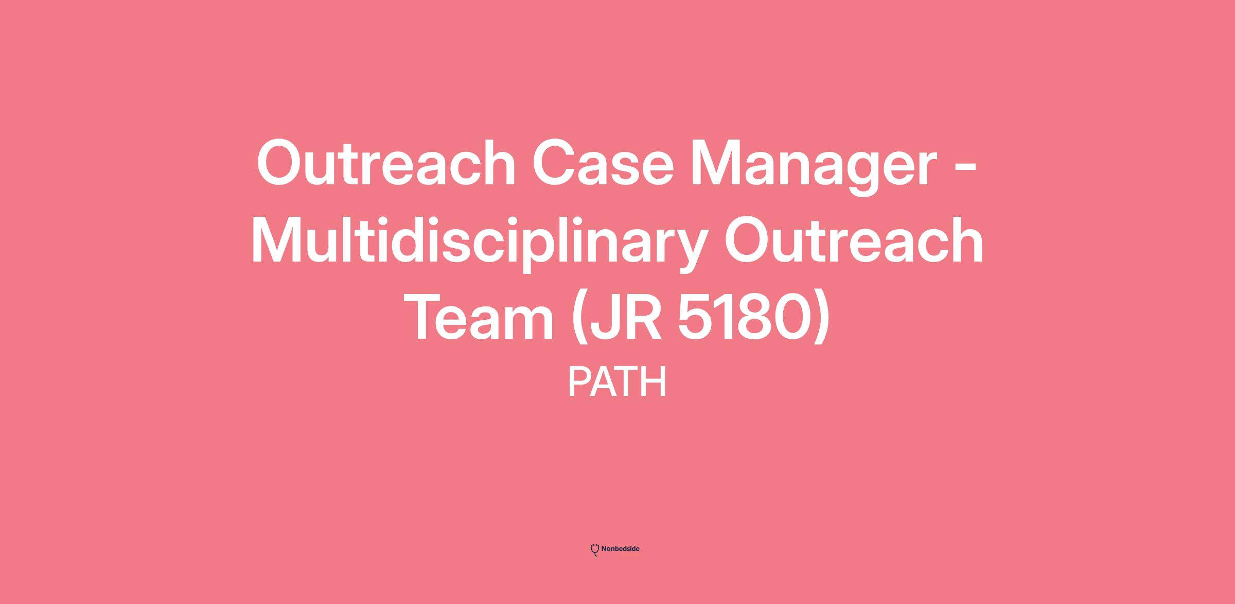 PATH is seeking candidates passionate about helping others make a positive change in their lives to join our Outreach Services team as the Outreach Case Manager - MDT.