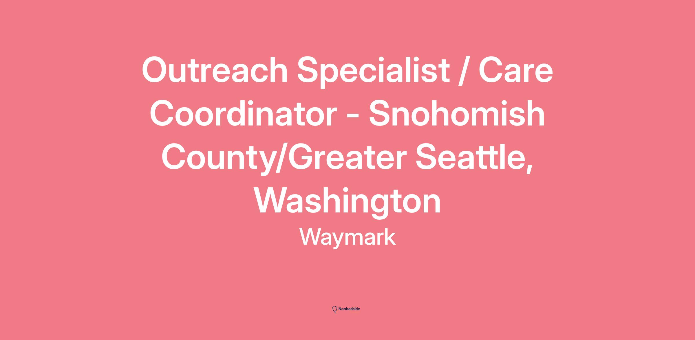 Outreach Specialist / Care Coordinator - Snohomish County/Greater Seattle, Washington