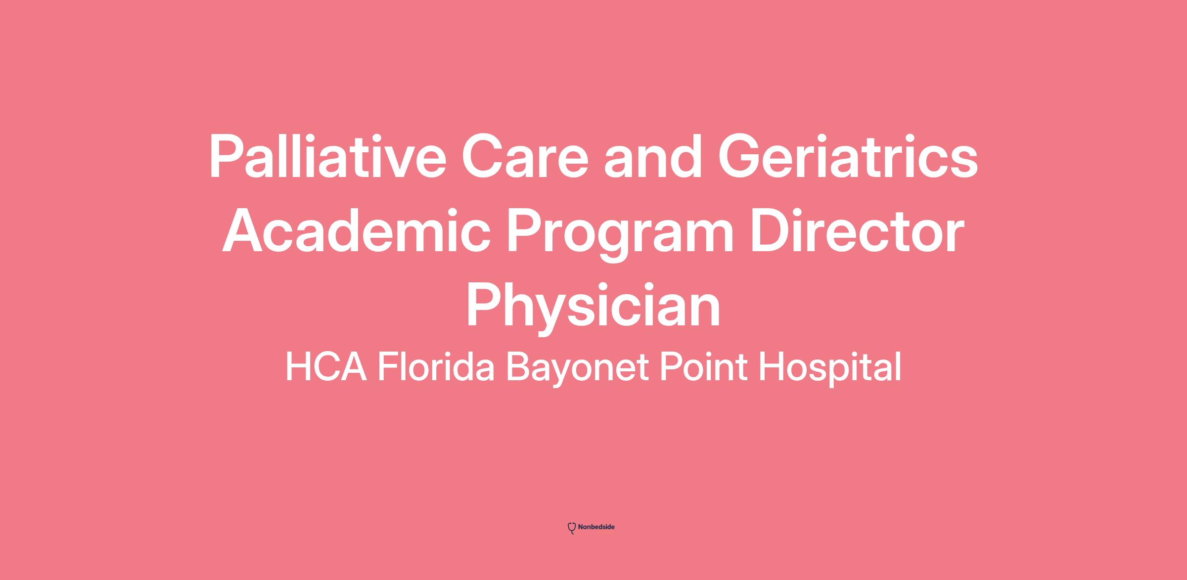 Palliative Care and Geriatrics Academic Program Director Physician Join to apply for the Palliative Care and Geriatrics Academic Program Director Physician role at HCA Florida Bayonet Point Hospital