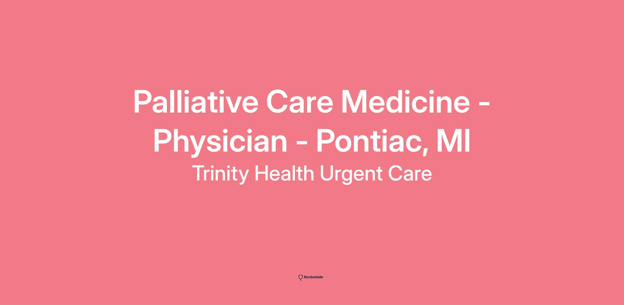 3. Opportunity Details - Palliative Care Medicine - Physician - Pontiac, MI# Palliative Care Medicine - Physician - Pontiac, MI## OPPORTUNITY HIGHLIGHTS## ABOUT THE FACILITY**Trinity Health Oakland Hospital** is a 497-bed community teaching hospital, level II trauma center and longtime leader in health care in Oakland County. Trinity Health provides comprehensive care including cardiovascular, stroke, orthopedics, obstetrics, gynecology and cancer care.The hospital has been a leading provider of the most advanced medical care for more than 90 years. As part of Trinity Health System, we have received numerous local and national awards in recognition of our leadership, quality outcomes and clinical excellence. Our personalized care is designed to heal body, mind and spirit as we bring hope and compassion to the communities we serve.Building on our foundation as a world-class hospital, Trinity Health has invested in the future of our campus and is committed to bringing the best care to community members where they live and work. The hospital campus features a surgical pavilion, south patient tower with 204 private rooms and recently renovated mother baby unit. We continue to expand services available on campus and at convenient locations across Oakland County, including lab, imaging and urgent care services in addition to primary and specialty care.For more information about Trinity Health Oakland Hospital, please visit our .## ABOUT THE COMMUNITY**Oakland County, Michigan –** Named for its beautiful oak trees, Oakland County offers a blend of big city, suburban, and rural lifestyles. Oakland County is recognized as having Michigan’s second highest population with a residential population of more than 68,000 and has continued to grow since its inception over 175 years ago. Located north of Detroit, Oakland County is part of the nation’s seventh largest metropolitan area and is home to 39 cities and 14 townships. Today, residents have access to 30 downtown areas, nearly 90,000 acres of natural settings, several entertainment and sports venues, plus countless opportunities to achieve a high quality of life. This area is also home to several institutions of higher education, well-known private schools, and exemplary public schools. With its proximity to Detroit, quality schools, and numerous recreational opportunities, the Oakland area is a perfect place to raise a family. Museums and golf courses are nearby, and Detroit's sporting events, concerts and more are just a half-hour away. The old, well established neighborhoods of the past are joined by gorgeous new residential development. The Oakland area is also a great locale for pet lovers. Oakland County is the new horizon for living, working and prospering. Focused on the future, Oakland County is one of the wealthiest counties in America, and features a quality of life and commerce that few places can match. Oakland offers world-class educational opportunities for children and adults, ranging from two award-winning public school districts, Avondale Schools and Rochester Community Schools, to Oakland University, a major Division 1 degree-granting university. The community also is served by 10 private schools, Rochester College and Oakland Community College, the largest of Michigan's community-based publicly funded institutions. With excellent schools, affordable housing, employment opportunities and an abundance of cultural and recreational activities, moving to Oakland County will be the best decision you can make.## ABOUT TRINITY HEALTHTrinity Health is one of the largest multi-institutional Catholic health care delivery systems in the nation. We serve people and communities in 22 states from coast to coast with more than 90 hospitals and 100 continuing care facilities – including home care, hospice, PACE and senior living facilities and programs that provide nearly two and a half million visits annually. Trinity Health employs more than 133,000 colleagues, including 7,800 employed physicians and clinicians.**Our mission:** *We, Trinity Health, serve together in the spirit of the Gospel as a compassionate and transforming healing presence within our communities.* We support this mission by living our core values of *Reverence, Commitment to Those Who are Poor, Justice, Stewardship, and Integrity.* Committed to recruiting talented physicians, we are looking for physicians who share our values and want to help us fulfill the health care needs of the communities we serve.At Trinity Health, we value the physician relationship and focus on partnering with our physicians. Whether you are a practicing physician looking to relocate or a medical resident, we offer opportunities with the flexibility to fit your individual needs. If you would like to be part of Trinity Health, we encourage you to explore this opportunity at .If you are interested in this opportunity and would like to submit your CV, please email Trinity Health Recruitment at docopps@trinity-health.org.Trinity Health IHA Medical Group has an excellent full-time employment opportunity for a Board Certified or Board Eligible Palliative Care physician to join our inpatient team located in Oakland, Michigan.Our Palliative Care team may consult with patients, families, and other healthcare team members to treat pain and other symptoms, help with discussion of goals and wishes, or provide extra support to help families find needed resources to assist in caring for their loved one.We are seeking a compassionate and dedicated Palliative Care Physician to join our multidisciplinary team. The ideal candidate will be responsible for providing comprehensive palliative care services to patients with chronic pain and serious, life-limiting illnesses. The role involves both inpatient and outpatient care, with a focus on improving the quality of life for patients and their families.**Key Responsibilities:*** Evaluate, diagnose, and treat patients with complex pain conditions and those requiri