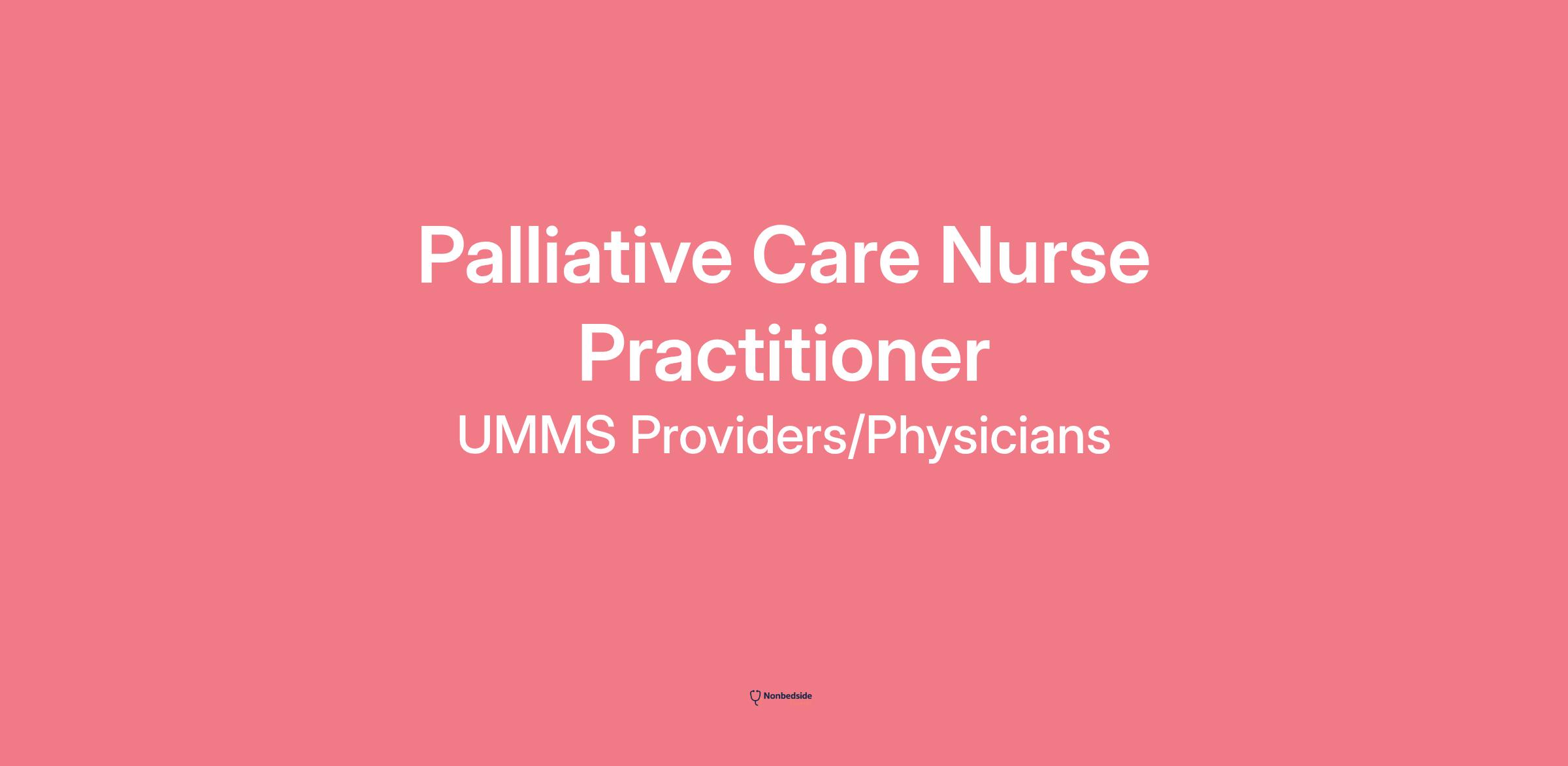 Job Description The University of Maryland Medical System is looking for a Palliative Care Certified Nurse Practitioner to join our team. This position will work at the flagship University of Maryland Medical Center as well as at our Midtown location which are in close proximity to each other.