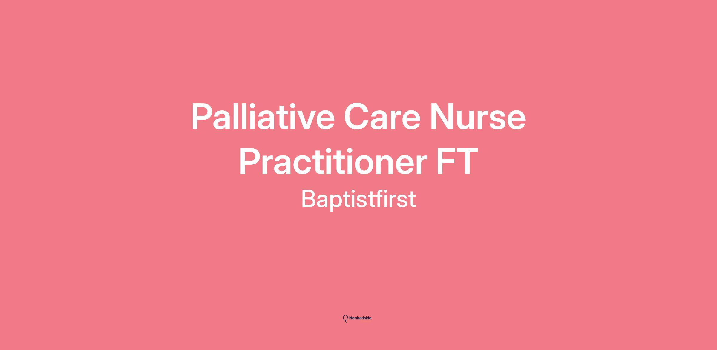 Palliative Care Nurse Practitioner FT page is loaded## Palliative Care Nurse Practitioner FTremote type: 1- Onsitelocations: Baptist Medical Center Southtime type: Full timeposted on: Posted Todayjob requisition id: JR102718Baptist Health is the largest healthcare system serving central Alabama, providing comprehensive hospital-based and outpatient services to nearly 60 percent of the residents in Montgomery, Autauga and Elmore counties.To learn more about Baptist Health, visit us at .**Highlights:****Summary**: The Nurse Practitioner shall be responsible to perform tasks and procedures delegated by the collaborating Physician within their scope of practice. This individual will perform complete, detailed, and accurate histories, as well as to, review patient records to develop comprehensive medical status reports. Additionally, the Nurse Practitioner will complete physical examinations, make diagnoses and institute therapy, including drug therapy. This individual will also institute emergency measures and emergency treatment, arrange hospital admissions and discharges at the direction of the collaborating Physician, and to perform hospital rounds. The Nurse Practitioner will provide instructions and guidance regarding medical care matters to patients. This position may have additional duties assigned that are within scope of the role. **Education / Experience**: Master of Science in Nursing degree required. Minimum two years of related experience required.Note: CVICU Nurse Practitioners require two years of ECMO (extracorporeal membrane oxygenation) experience.**License / Certification**: Active RN license required, active Nurse Practitioner license required, BLS required. Neonatal Nurse Practitioner (NNP) certification through National Certification Corporation (NCC) required for those in the NICU. Nurse Practitioner certification through American Nurse Credentialing Center (ANCC) or the American Academy of Nurse Practitioners (AANP) required in all other areas. Additional certifications (ACLS, PALS, NRP, etc) may be required based upon assigned department.**Knowledge, Skills, and Abilities**: • Knowledge of basic Windows based PC operations. • Excellent organizational skills. • Strong analytical skills. • Good oral and written communication skills. • Ability to maintain a professional and customer centric composure in difficult or challenging situations. • Ability to work from broad directions and be self motivated. • Ability to prioritize workload to achieve maximum efficiency. • Ability to effectively communicate with people of various backgrounds throughout the organization. • Ability to provide a positive customer service experience to guest, visitors, and patients.**Work Conditions/Physical Requirements:**Position requires sitting for 20% of the workday and mobility 80% of the workday. There is occasional stooping, bending, kneeling, and crouching. There is frequent reaching, use of hands and repetitive action. Requires occasional lifting or carrying up to 50 pounds, pushing/pulling up to 150 pounds. There is a continuous need for speaking with clear diction and hearing sensitivity in conversation either by phone or in person. Continuous visual acuity at close and distant range. Inside protected from weather conditions but not necessarily from temperature changes. Minimal noise levels. Much exposure to computer work. Occasional exposure to risk of electrical shock. Some exposure to infectious disease while performing job-related tasks. Some exposure to hazardous chemicals. Occasional exposure to radiation.**Primary Location:**Baptist Medical Center South**Job:**Palliative Care Nurse Practitioner FTNP Nurse Practitioner**Job Type:**Regular-Full time**Shift**:First Shift (United States of America)