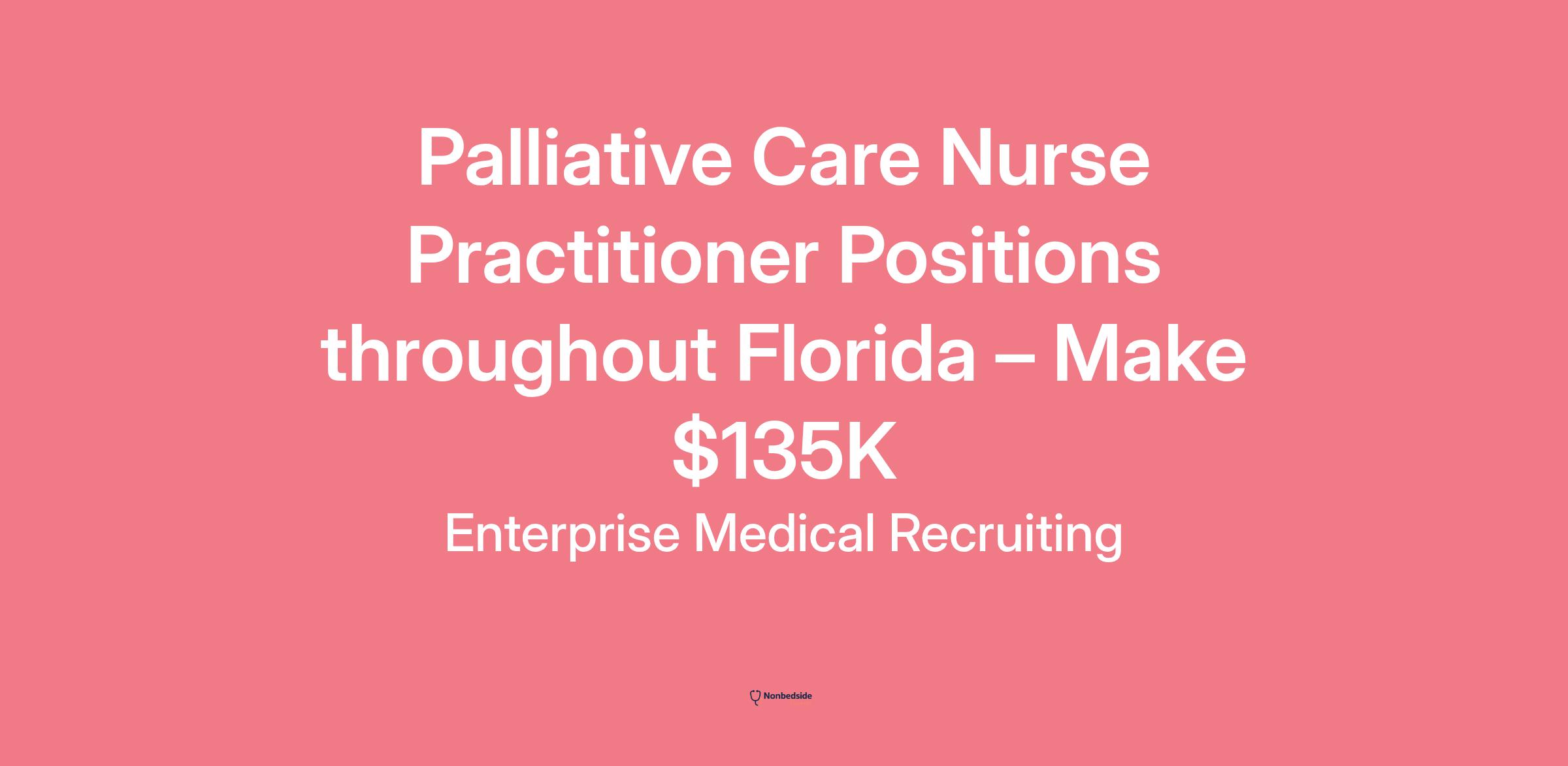 The group is hiring Palliative Care Nurse Practitioners to work with older adults in nursing homes in several Florida locations, including Fort Myers, Venice, The Villages, Orlando, Port St. Lucie, Ocala, and Jacksonville.