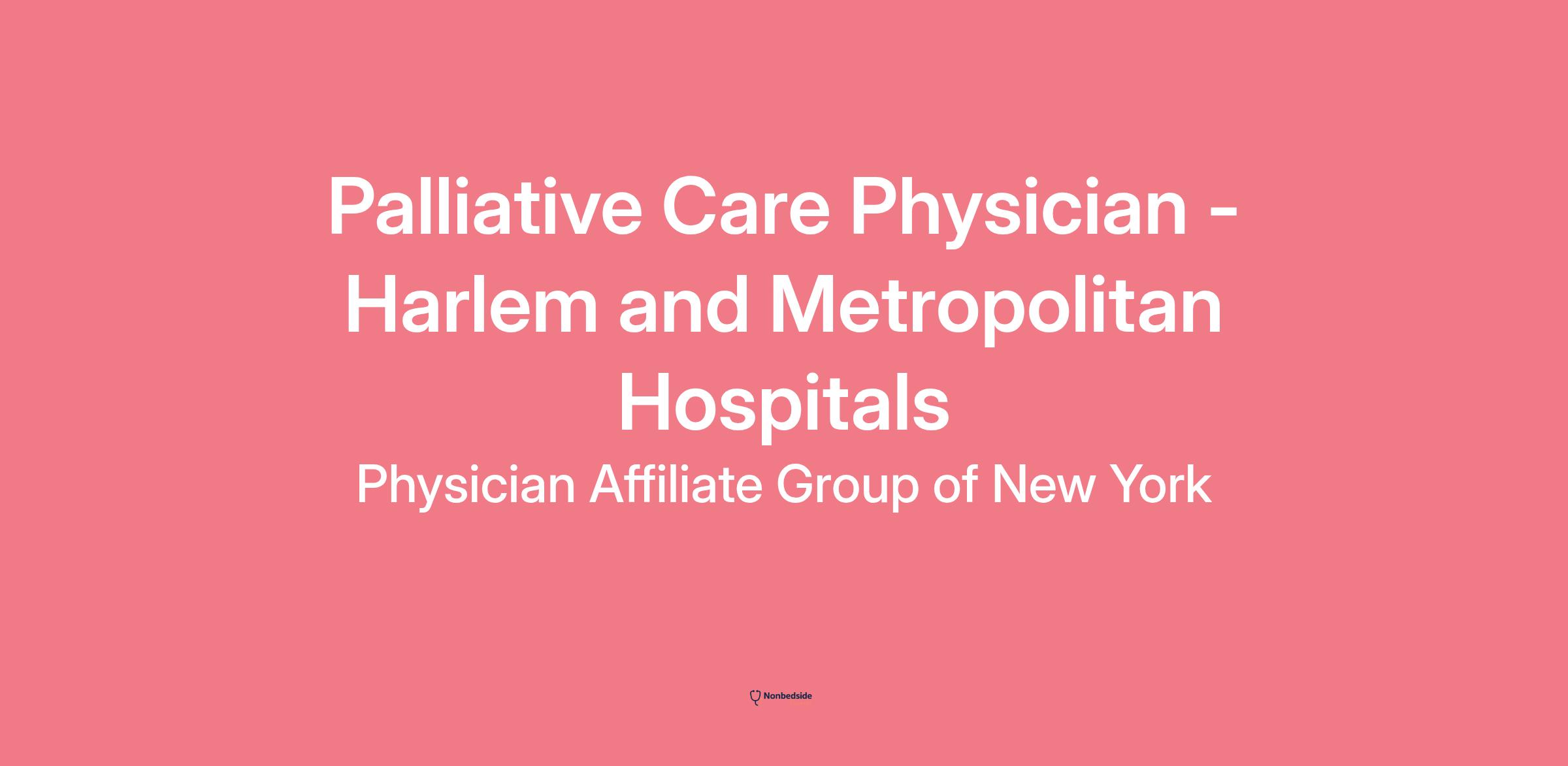 Physician Affiliate Group of New York (PAGNY) is adding a Palliative Care Physician to the team at NYC Health + Hospitals/Harlem and NYC Health + Hospitals/Metropolitan.