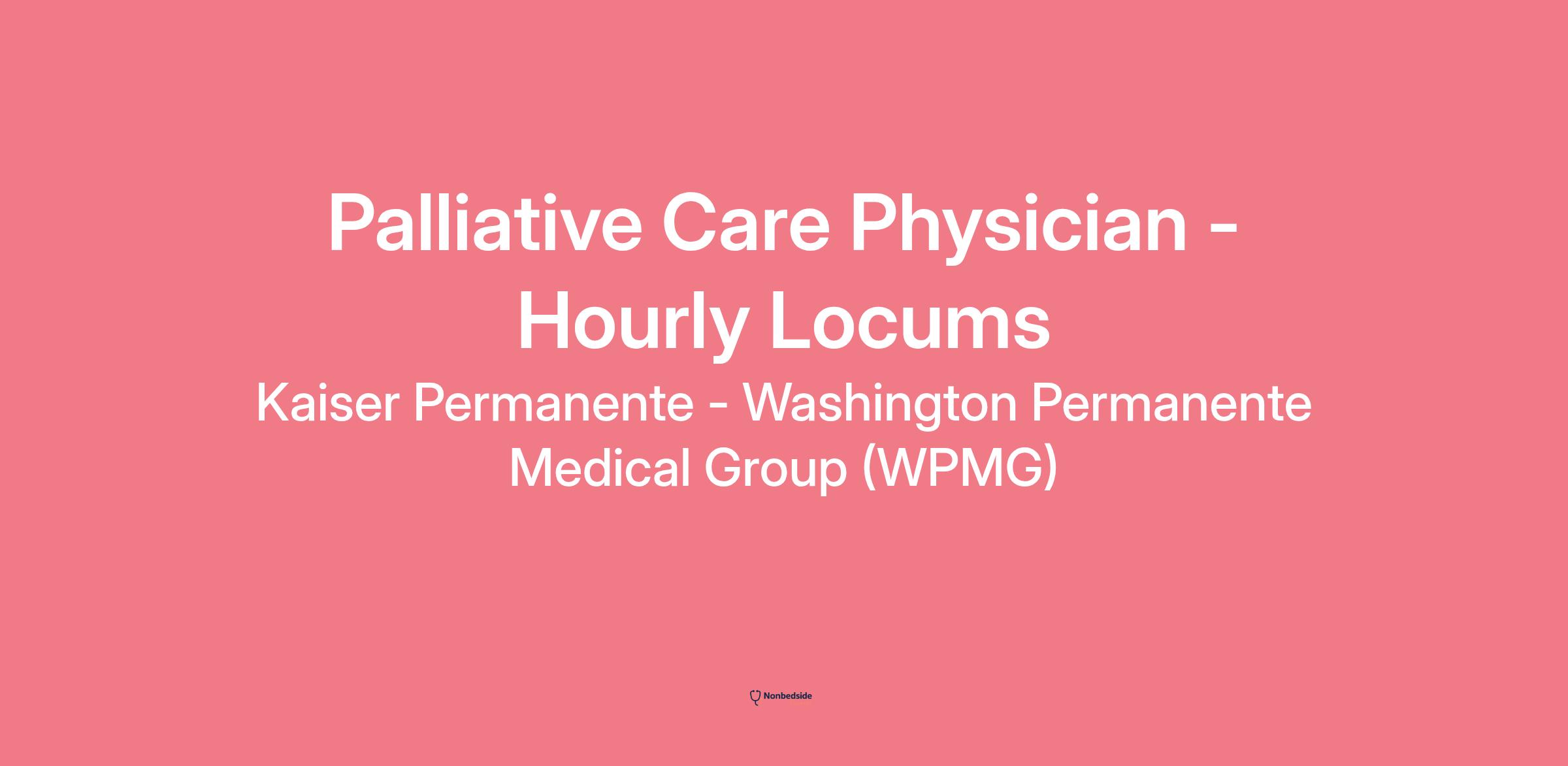 SummaryWashington Permanente Medical Group is seeking a dedicated, compassionate hourly locum physician to join our dynamic Palliative Care team, providing both inpatient and outpatient services. We welcome qualified candidates who are board-eligible or board-certified in Hospice and Palliative Medicine or Geriatrics. This is an excellent opportunity to deliver patient-centered care within a collaborative, multidisciplinary environment, supporting individuals and their families through complex medical journeys.
