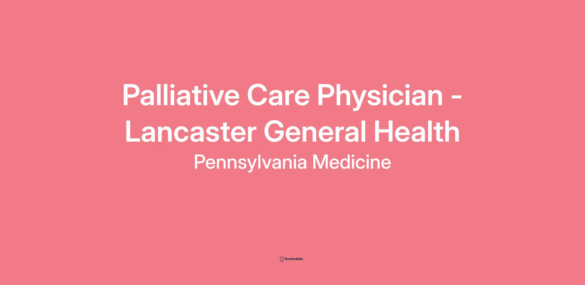 Position Description: Penn Medicine Lancaster General Health is seeking a palliative medicine physician to join a growing program throughout the health system. There is an opportunity to work in varied clinical settings (inpatient and outpatient) that may be tailored to the candidate's interests. The physician will join an already established interdisciplinary team comprised of physicians, advanced practice providers, nurses, social workers, and chaplains.