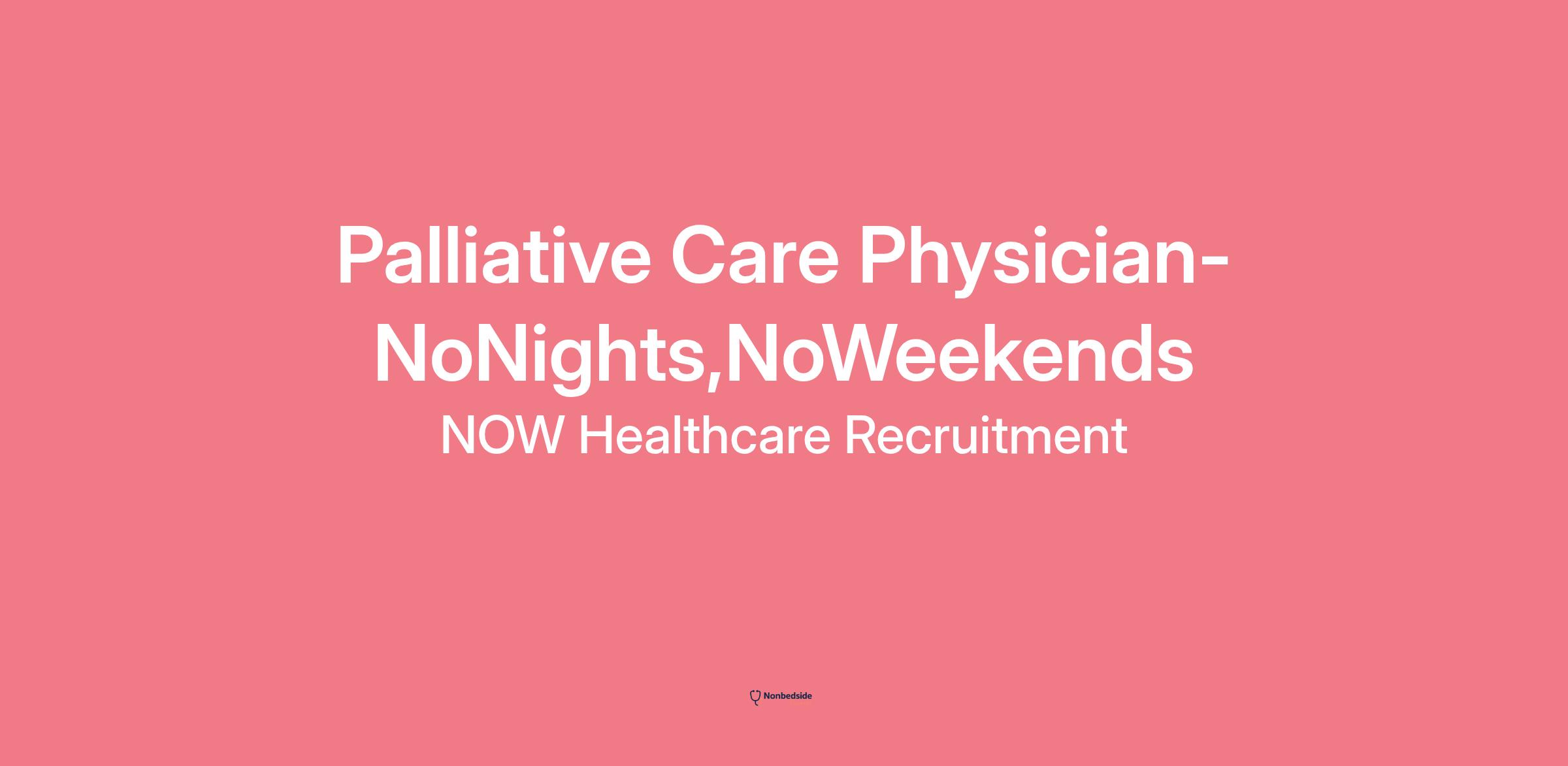 About this role: Palliative Care Physician Flexible full-time schedule; No weekends or holidays