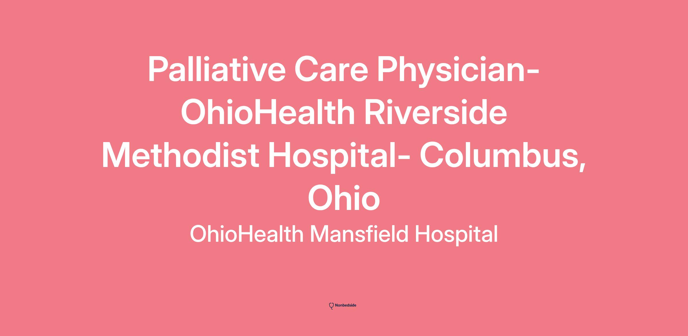 Palliative Care Physician - OhioHealth Riverside Methodist Hospital - Columbus, Ohio Join an award-winning, physician-led health system that prides itself on an inclusive, collegial, and innovative culture. As a Palliative Care Physician at OhioHealth, you will receive the support needed to balance your personal and professional goals and impact our mission of improving the health of those we serve.