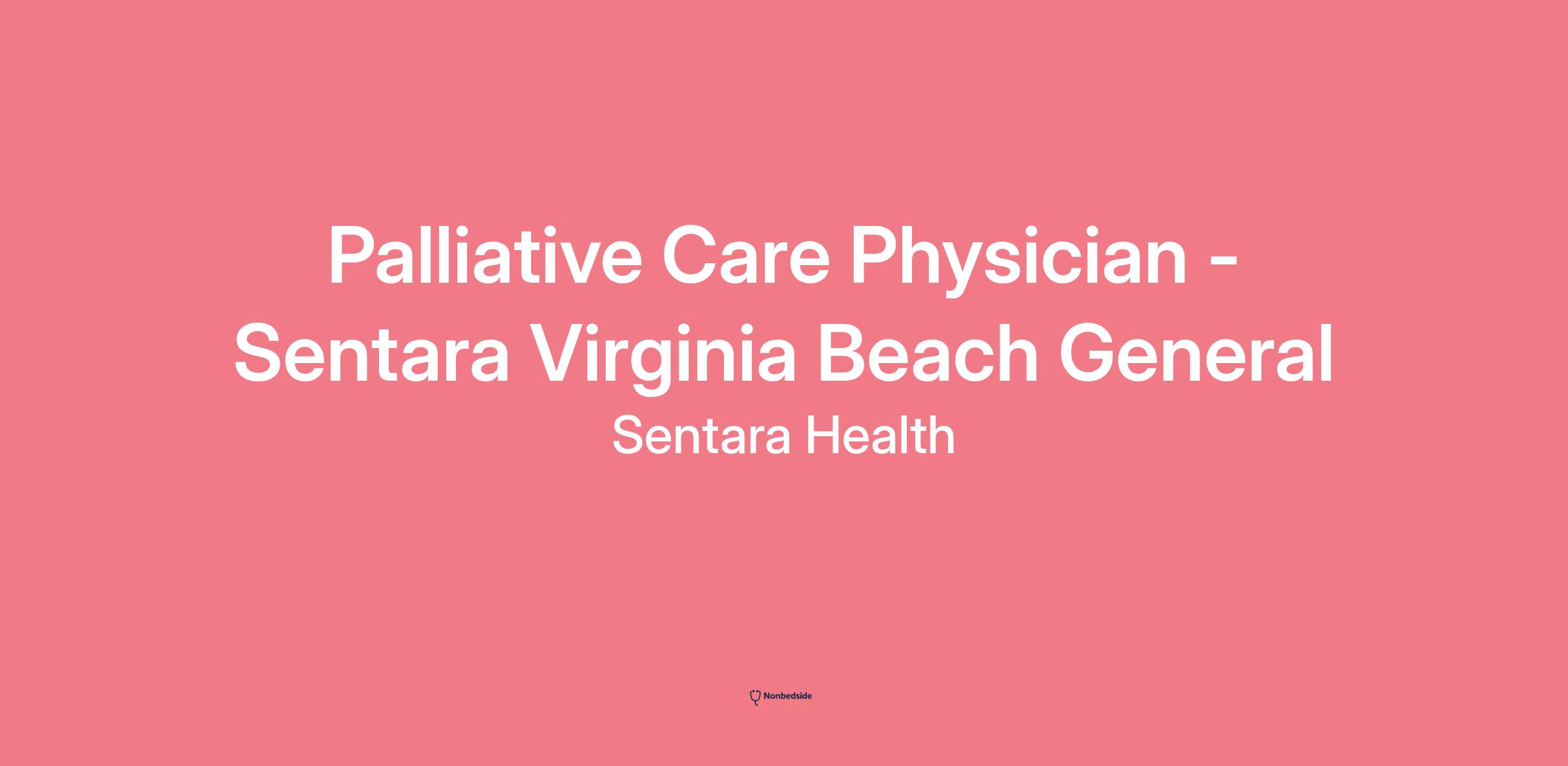 Palliative Care Physician - Sentara Virginia Beach General Join to apply for the Palliative Care Physician - Sentara Virginia Beach General role at Sentara Health
