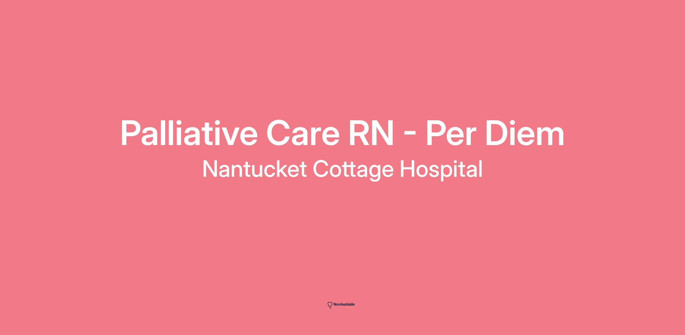Job Summary Located on Nantucket island. The Palliative Care Nurse Specialist is responsible for providing direct patient care and clinical management for patients and families. The Palliative Care Nurse works collaboratively with the Nurse Practitioner Director of PASCON to provide comprehensive palliative care for patients and families. The Palliative Care Nurse Specialist collaborates with physicians, Mid-level providers, nurses, social workers, and other appropriate staff within the hospital organization, as well as with outside agency staff to ensure team-based, coordinated, comprehensive care and seamless transitions for patients in any setting (hospital, home, nursing home).