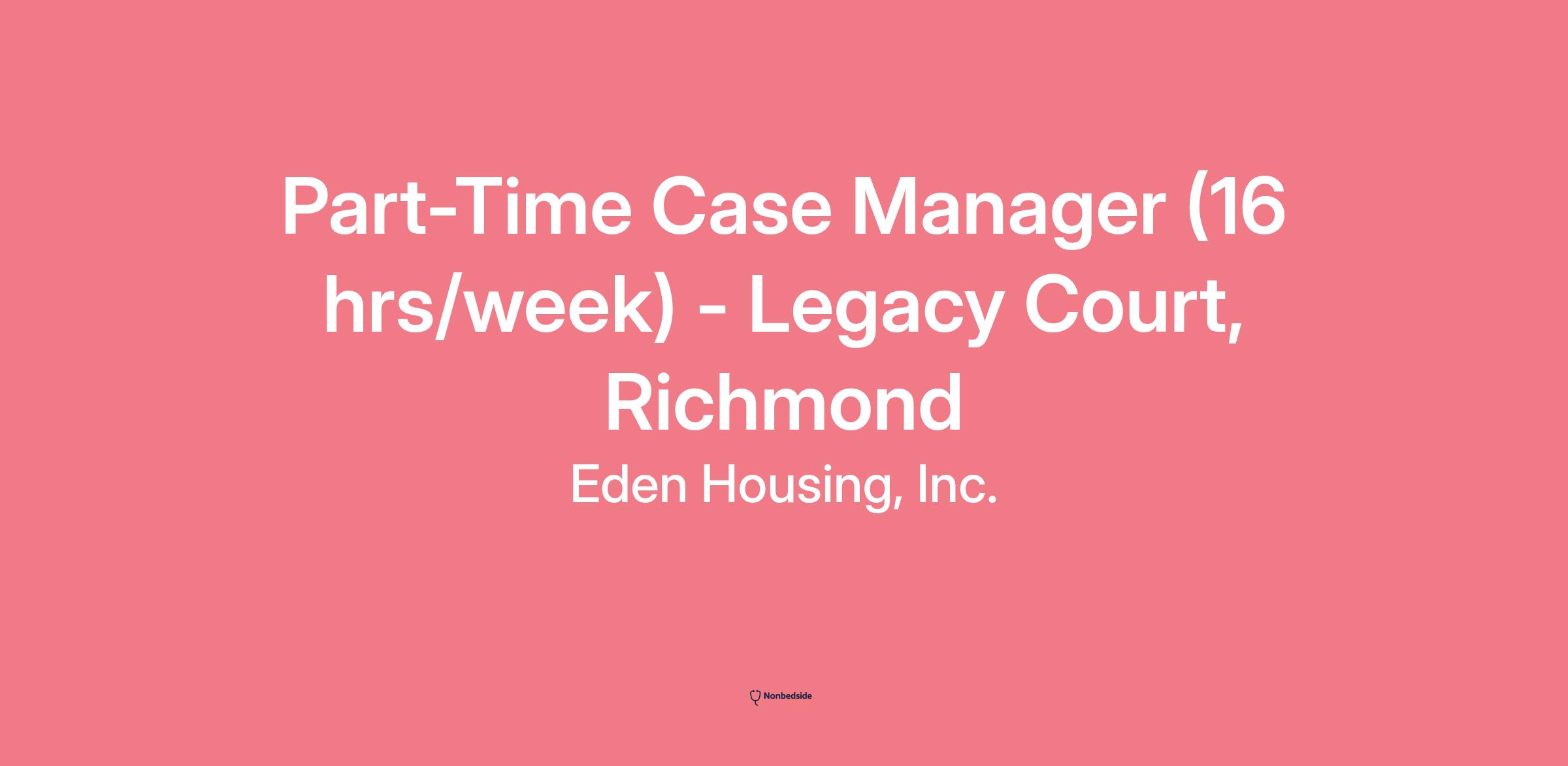 Join to apply for the Part-Time Case Manager (16 hrs/week) - Legacy Court, Richmond role at Eden Housing, Inc.