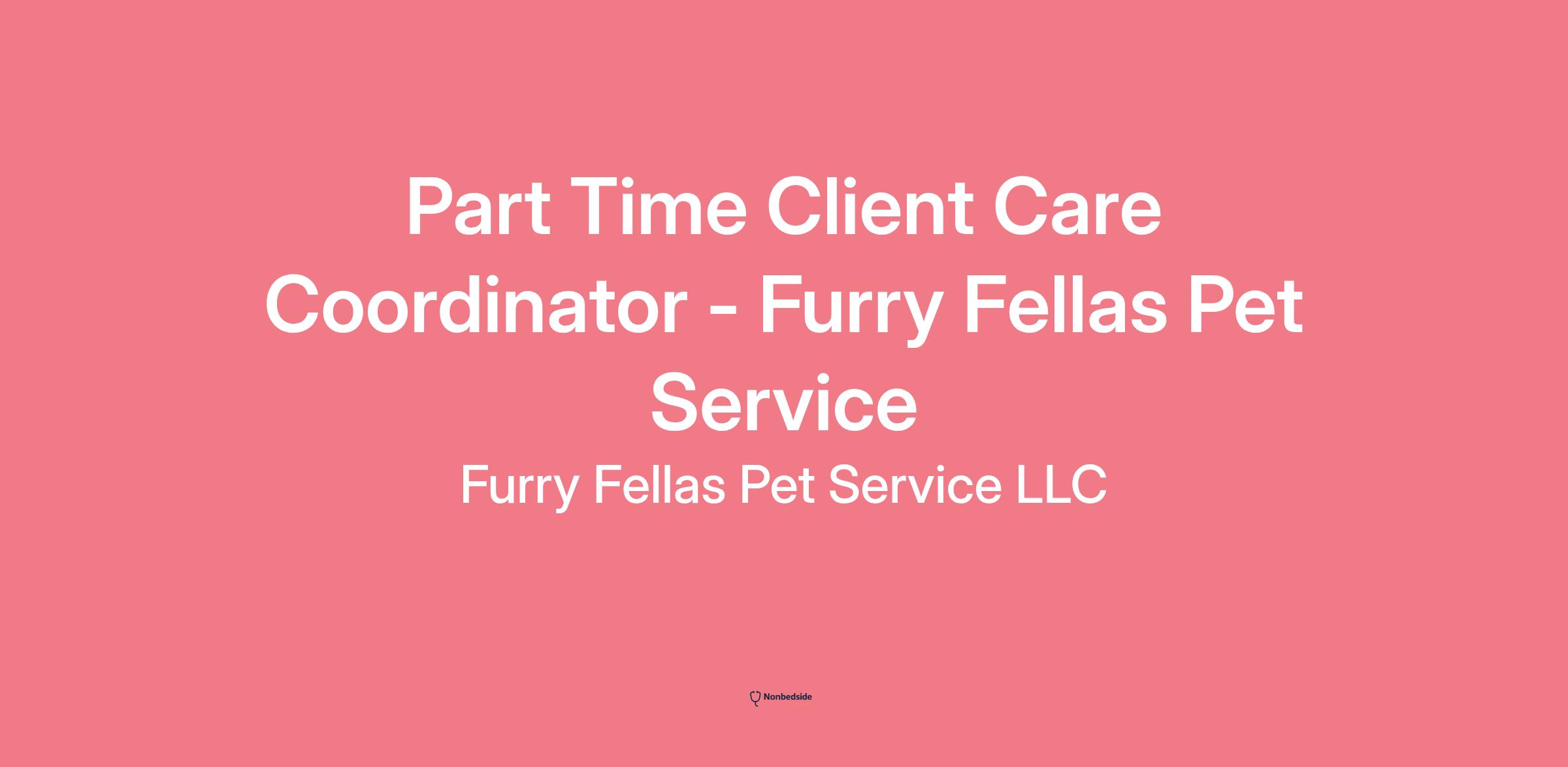 Furry Fellas Pet Service LLC currently has an opening for a Part Time Work from Home Client Care Coordinator