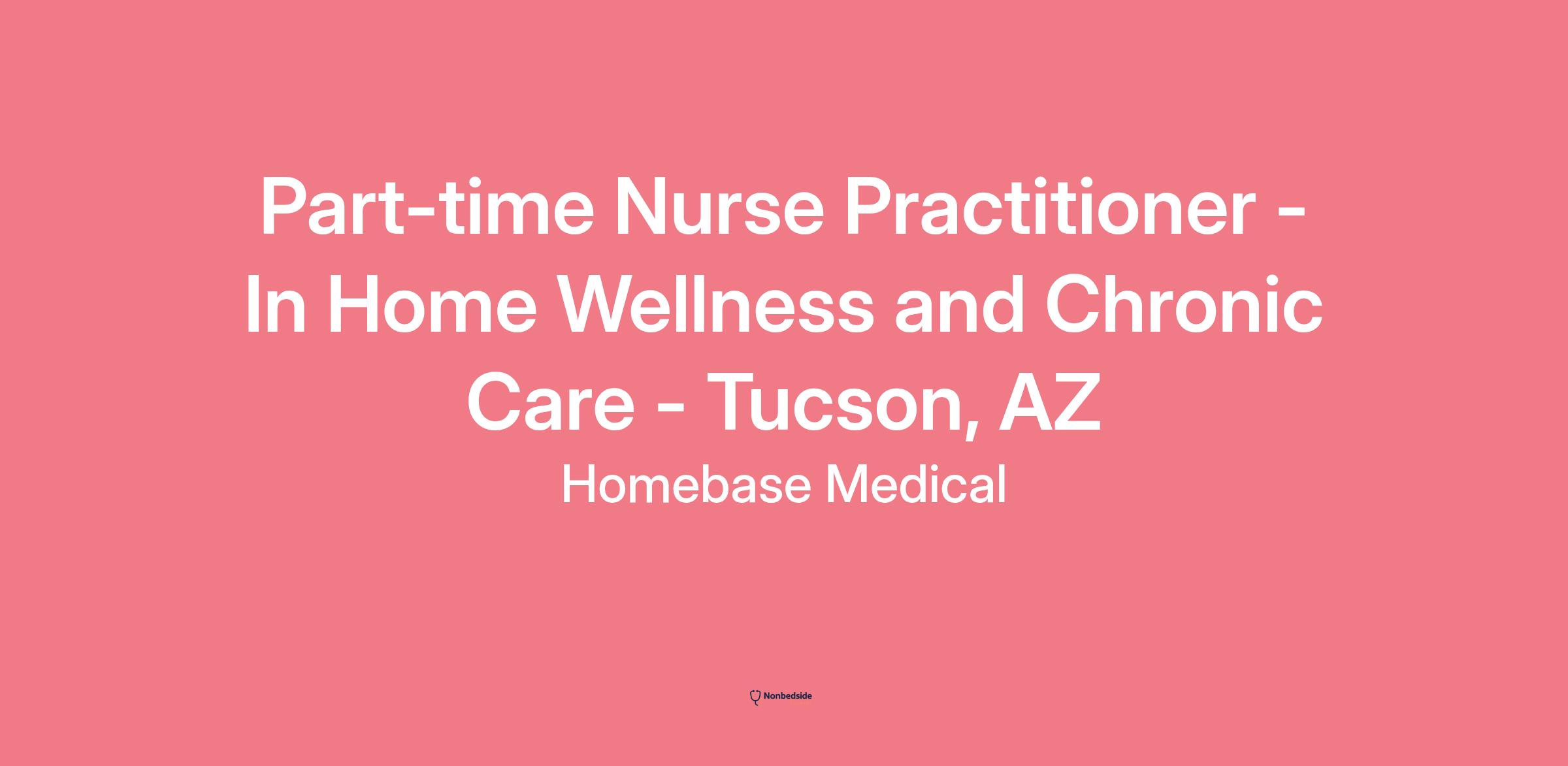 Part-time Nurse Practitioner or Physician Assistant - In Home Wellness and Chronic Care - Tucson, AZ Homebase Medical is getting back to basics. Our mission is to optimize the quality of life for homebound older adults, allowing them to live independently and with dignity in their own homes. We make house calls – enabling access to quality wrap-around services for homebound older adults with complex health needs while improving the quality of their lives, right at home.