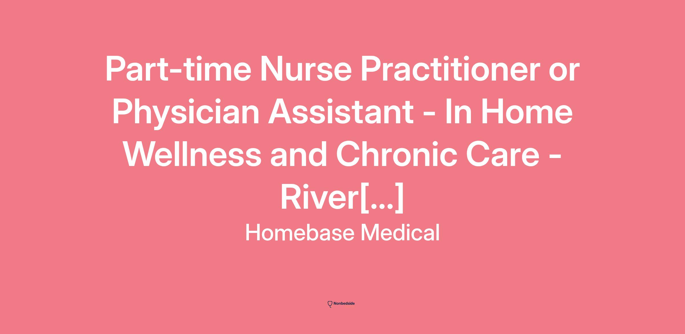 Homebase Medical is expanding rapidly into the Riverside South area. We are currently searching for experienced part-time Advanced Practice Clinicians (Physician Assistant or Nurse Practitioner) to join our expanding house call practice.
