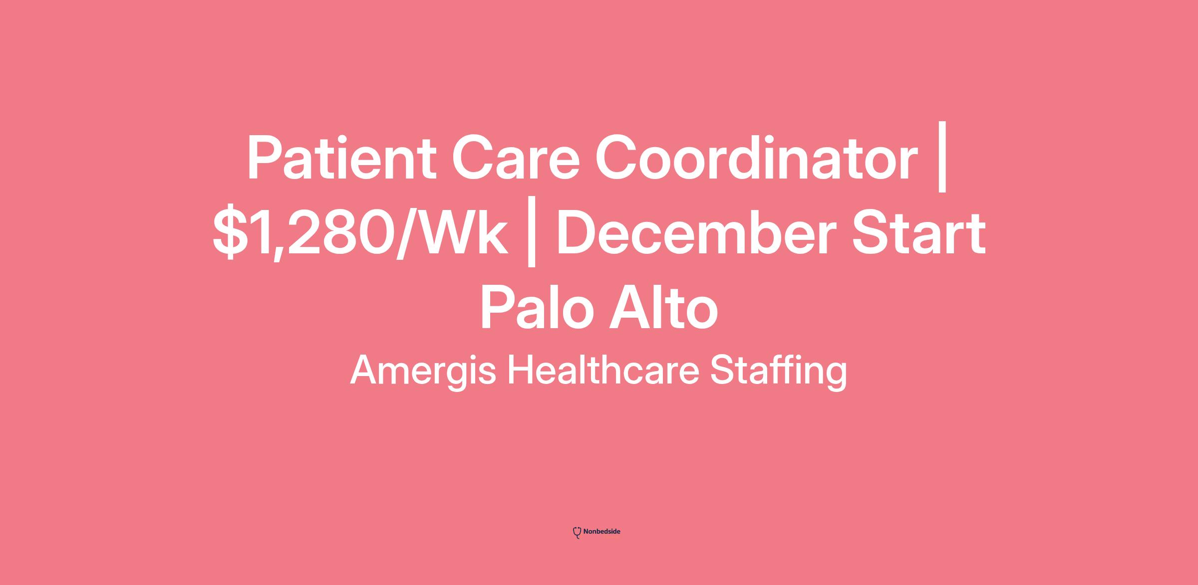 We're seeking an experienced Patient Care Coordinator/Medical Assistant for an assignment at a leading hospital in Palo Alto, California. This is a hospital-based role in a high-acuity outpatient setting, offering the opportunity to work with advanced technology and a collaborative team.