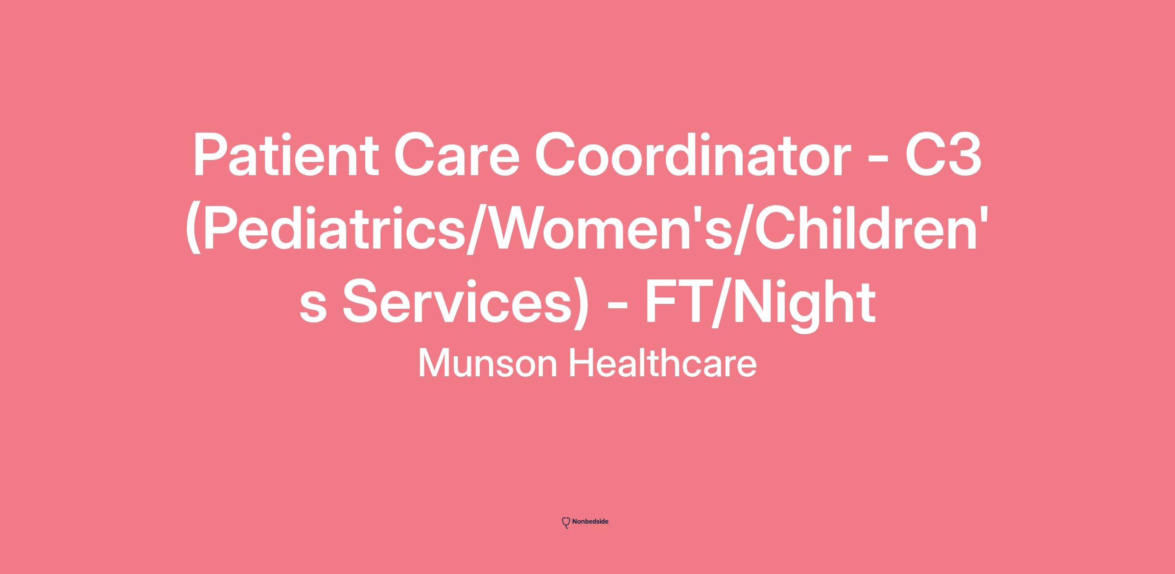 C3 is a 17 bed unit that provides pediatric women's and children's services, plastic and reconstructive surgery and general medicine overflow. C3 accepts Maternity overflow, medical surgical patients undergoing gynecologic procedures, plastic and reconstructive, and mastectomy surgery. Pediatric Intermediate Care provided.