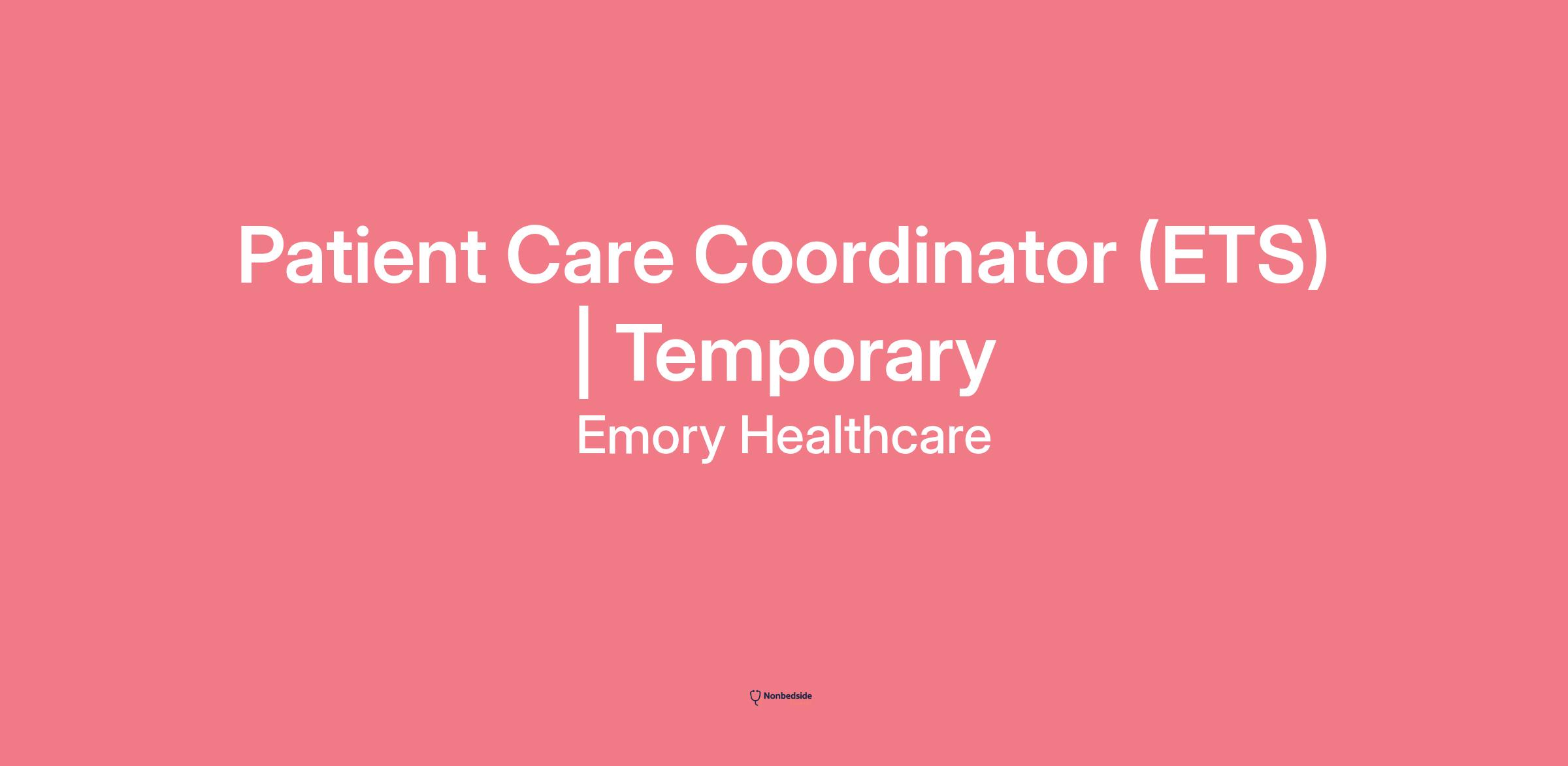 Join to apply for the Patient Care Coordinator (ETS) | Temporary role at Emory Healthcare