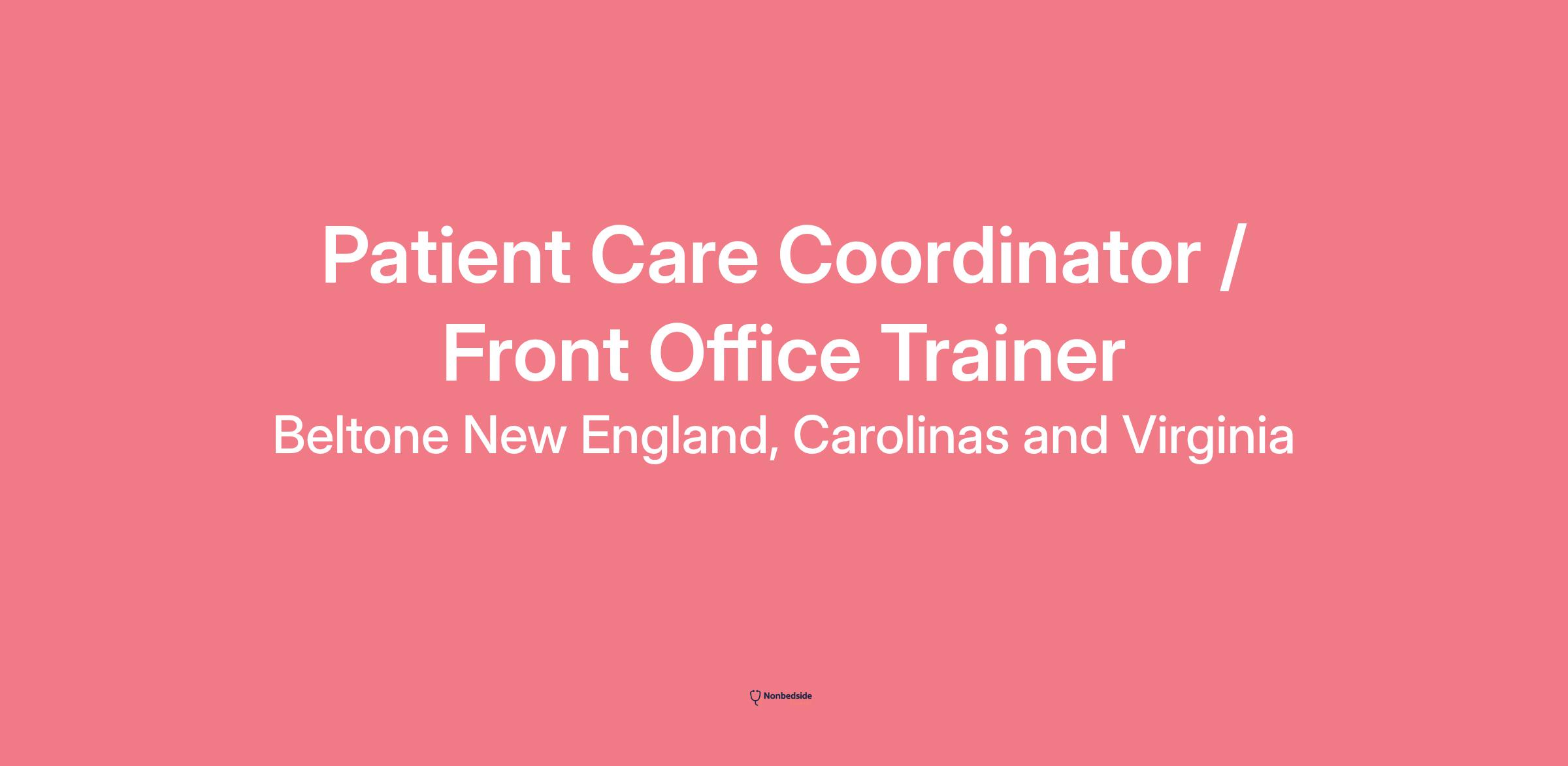 Description Beltone New England is seeking a dedicated and motivated Patient Care Coordinator (PCC) Trainer to join our team. This unique role combines front office responsibilities with the opportunity to train, mentor, and support new team members .