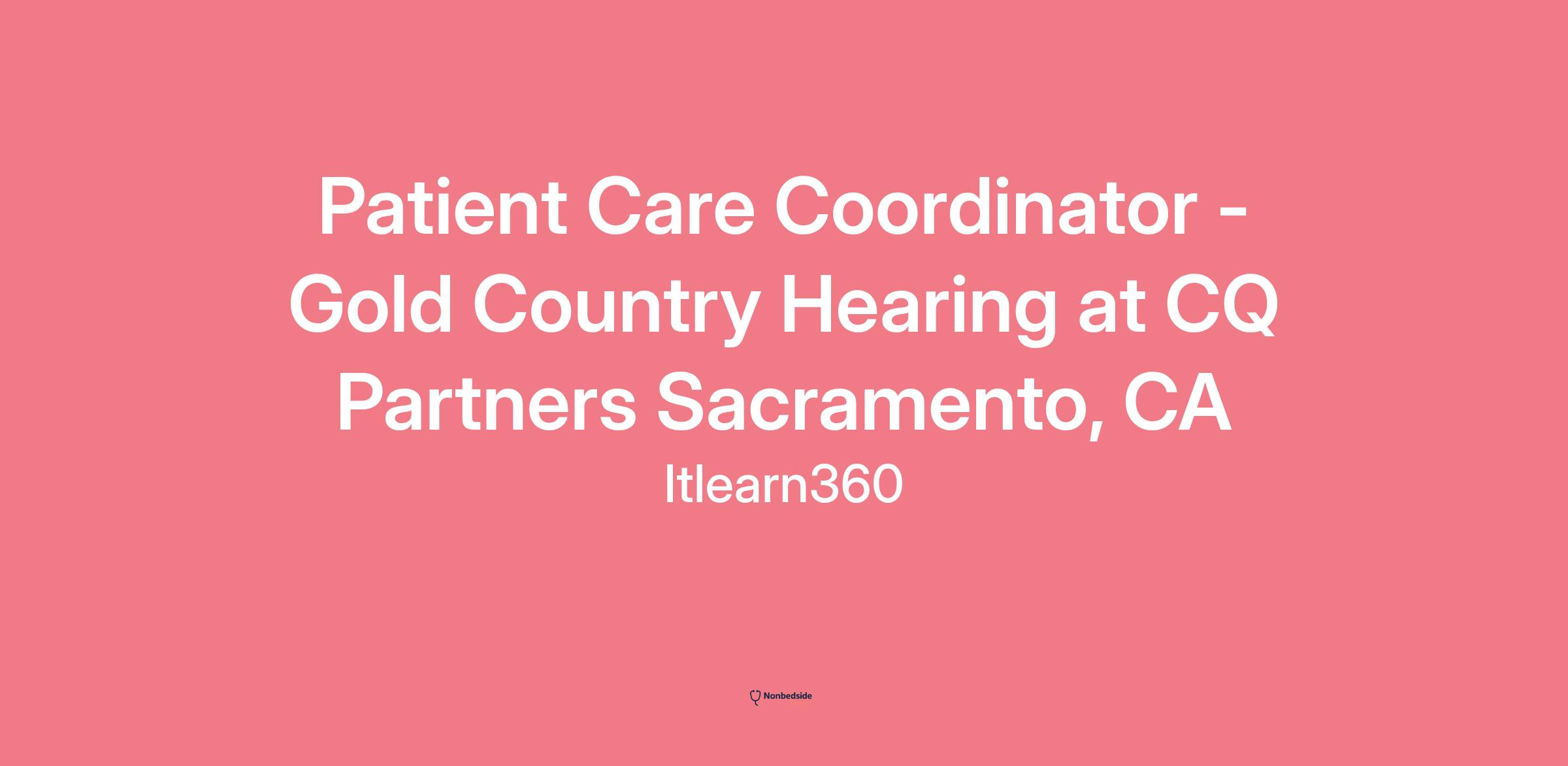 Patient Care Coordinator - Gold Country Hearing job at CQ Partners. Sacramento, CA.