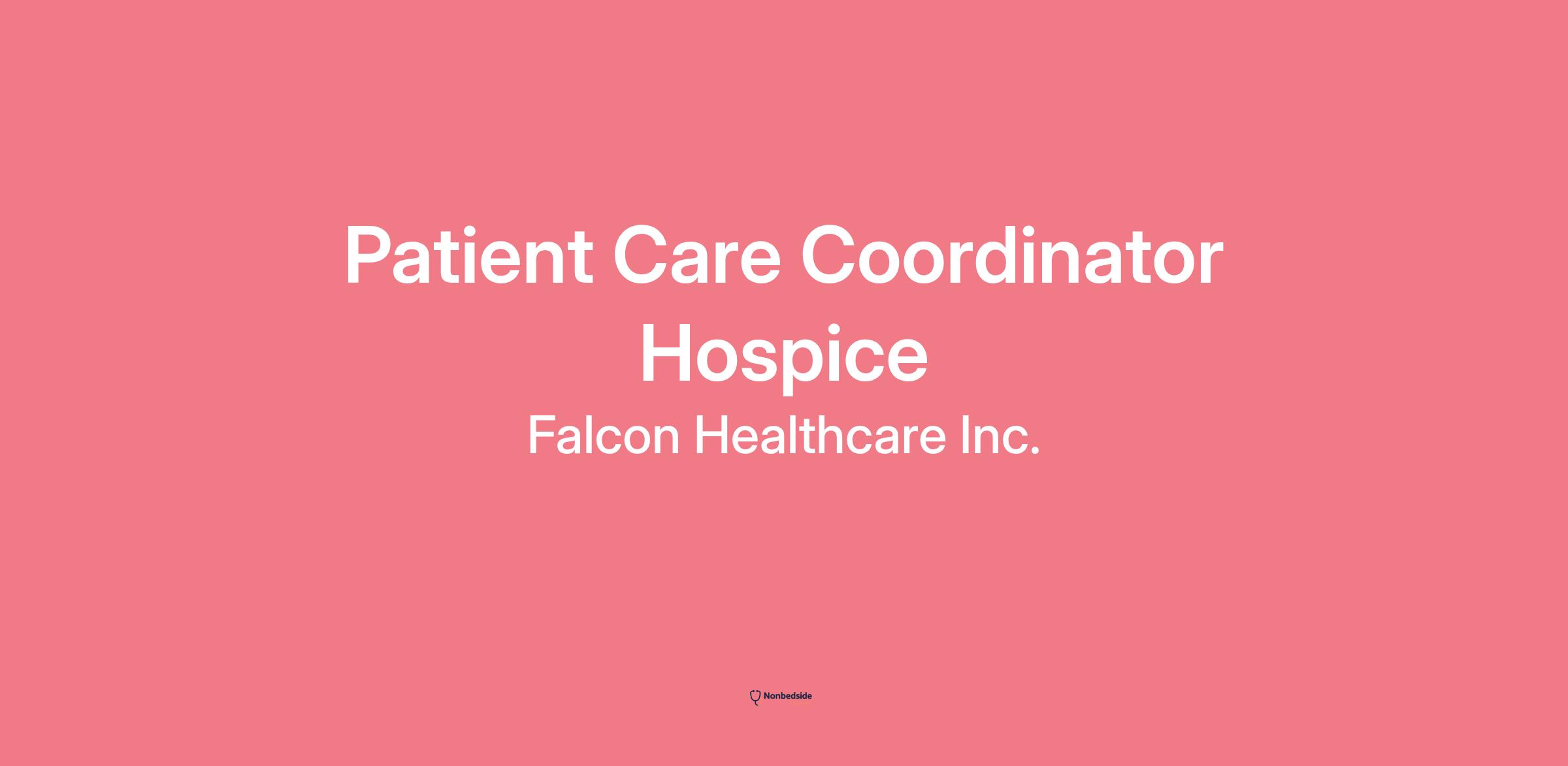 Falcon Healthcare Inc. - JobID: 200-911036 [Nursing Assistant / Health Aide] As a Patient Care Coordinator at Falcon Healthcare Inc., you'll: Accurately enter patient billing data, including visit charges and supply charges, into the information system; Accurately process Medicare, Medicaid, private payer and patient claims in accordance with payor requirements and organization policy; Close out patients clinical record when discharged; Coordinate and verify clinical documentation for input, Admission through Discharge; Process new patient referral information into the computer system on a timely basis...Hiring Immediately >>
