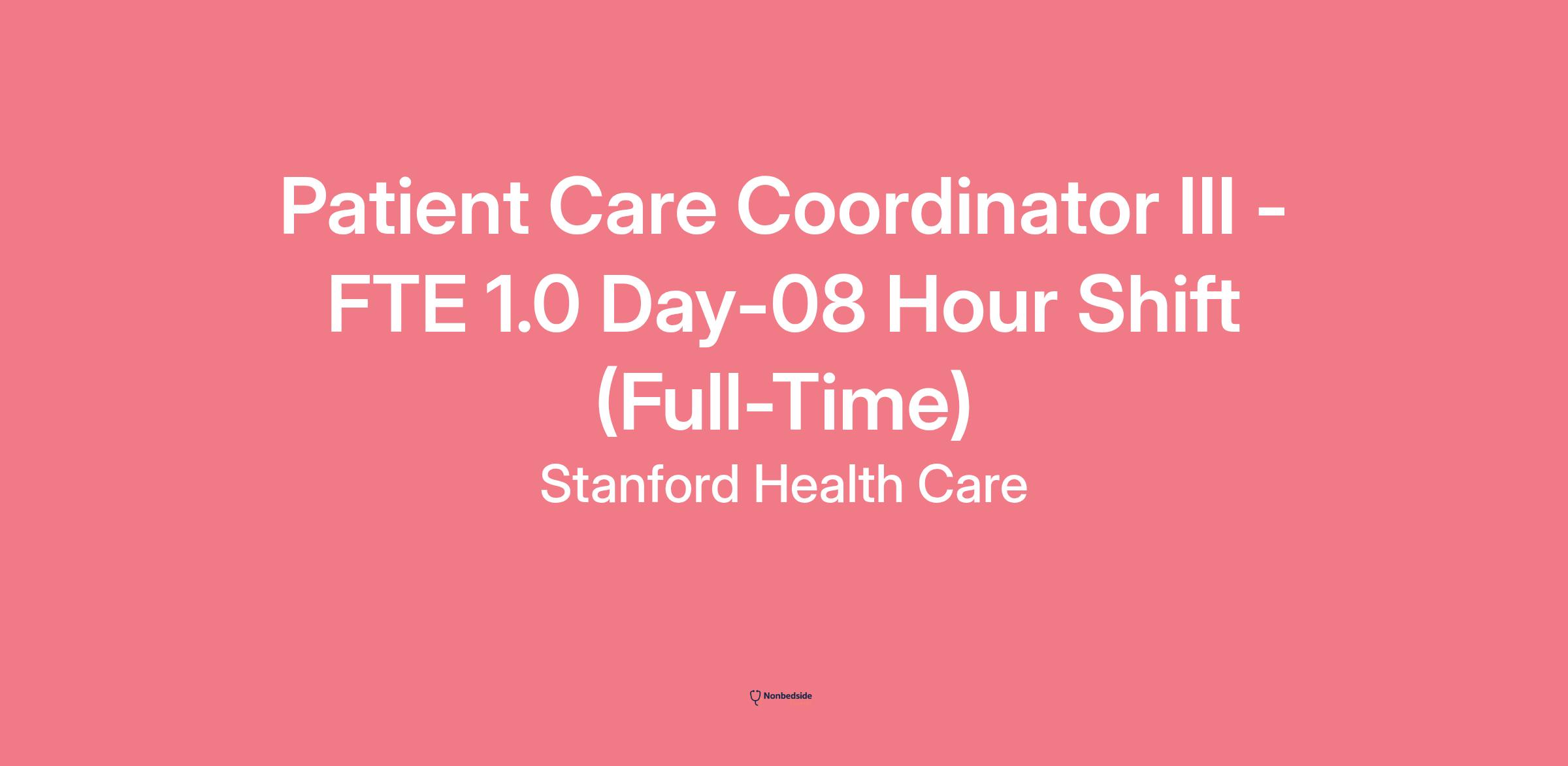 Patient Care Coordinator III - FTE 1.0 Day-08 Hour Shift (Full-Time)