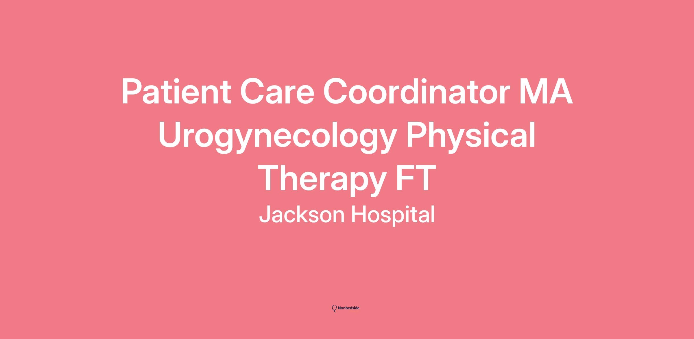 Patient Care Coordinator MA Urogynecology Physical Therapy FT