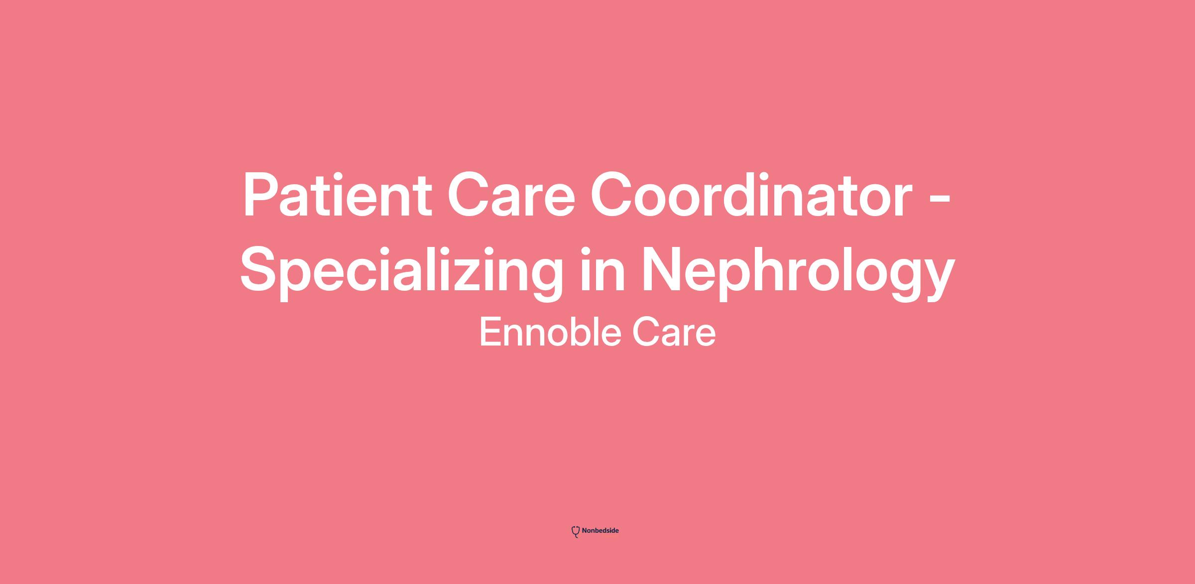 Ennoble Care is looking for a full-time, experienced Patient Care Coordinator - specializing in Nephrology that will work out of our Tulsa, Oklahoma office, who aligns with our motto, "To Care Is An Honor". This position is responsible for ensuring Ennoble Care is providing high quality care services. They work with clinicians, staff and patients to reach healthcare goals and keep the lines of communication open. As a Patient Care Coordinator - specializing in Nephrology, you should be compassionate, experienced, and highly organized. In this role, you will play an important part in our ability to provide exceptional care by managing the individual care providers, including scheduling and providing support for the caregivers and families.
