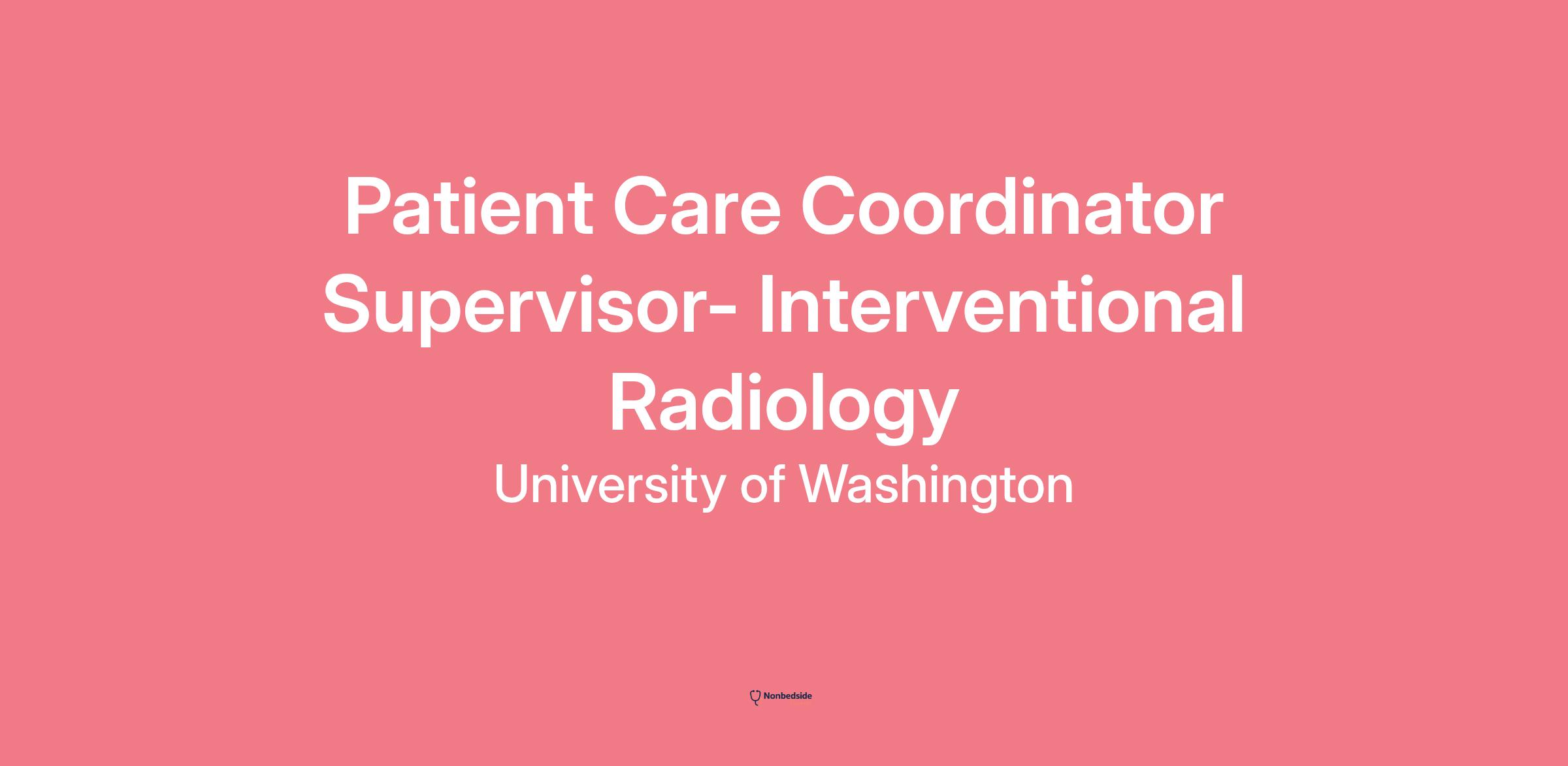 Patient Care Coordinator Supervisor - Interventional Radiology