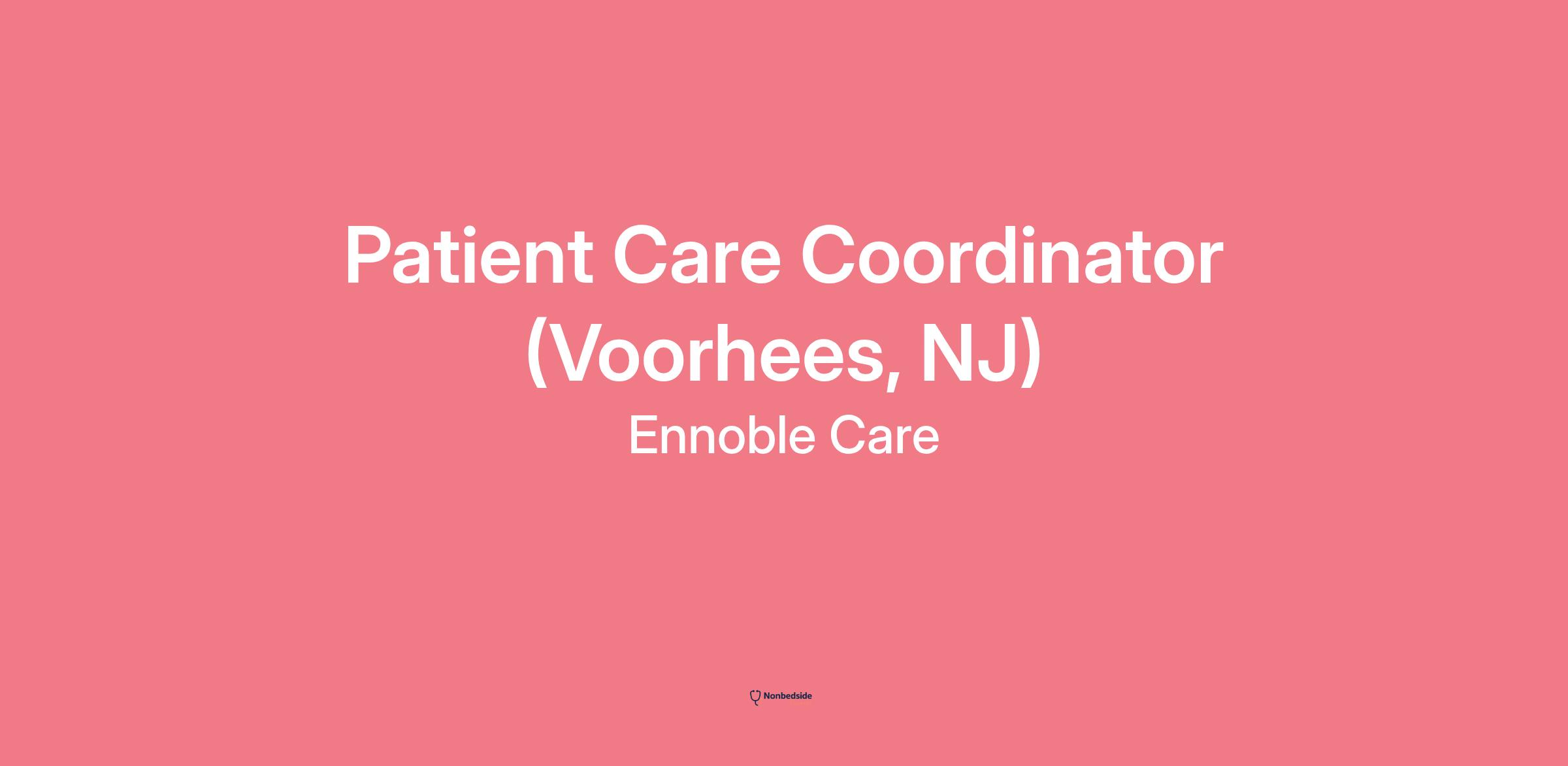 Ennoble Care is looking for a full-time, experienced Patient Care Coordinator that will work out of our Voorhees, New Jersey office, who aligns with our motto, "To Care Is An Honor". This position is responsible for ensuring Ennoble Care is providing high quality care services. They work with clinicians, staff and patients to reach healthcare goals and keep the lines of communication open. As a Patient Care Coordinator you should be compassionate, experienced, and highly organized. In this role, you will play an important part in our ability to provide exceptional care by managing the individual care providers, including scheduling and providing support for the caregivers and families.