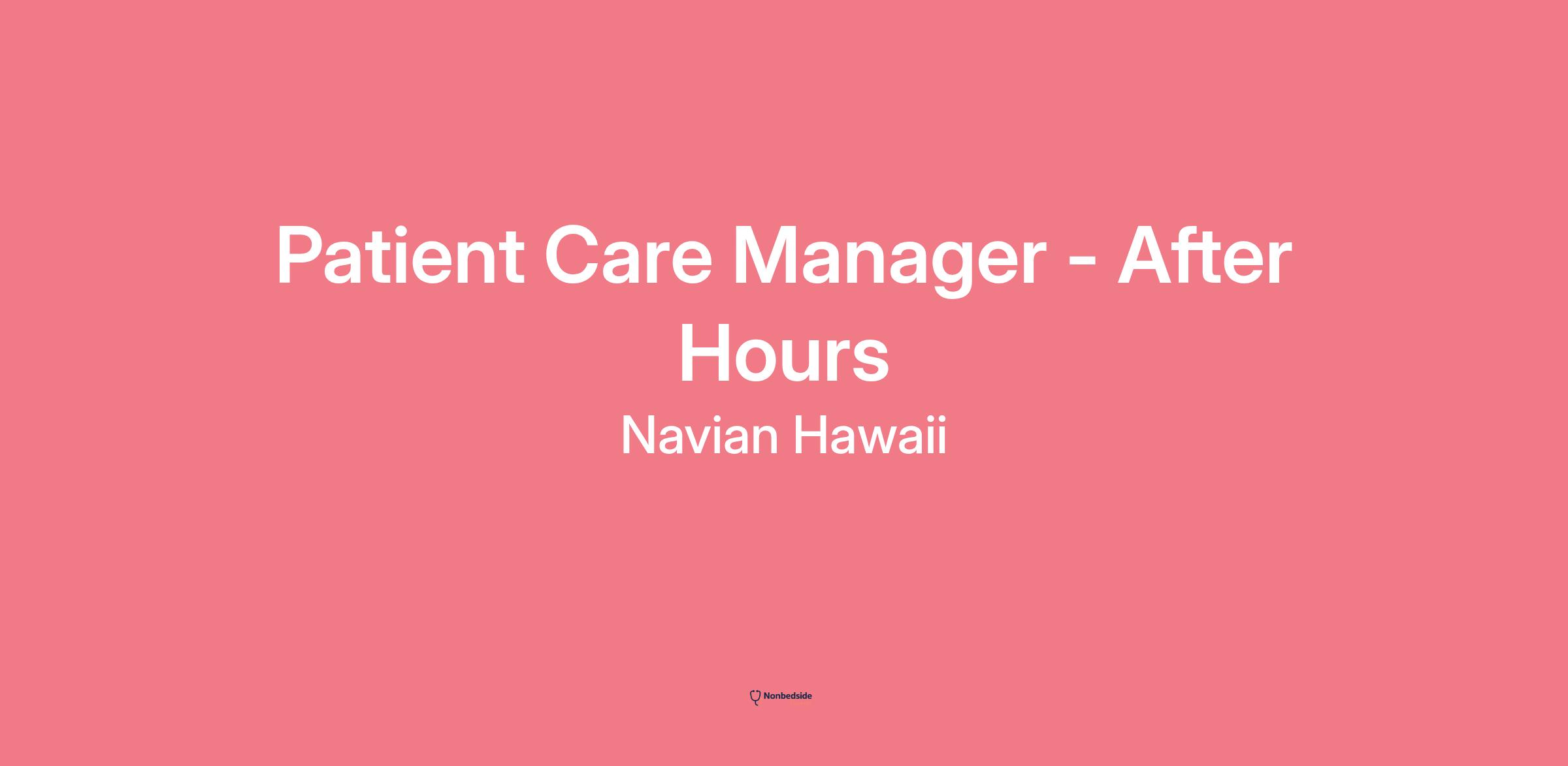 More than a nursing job, this is a position with a higher purpose - where you impact people's lives on a personal, human level. As a Navian Hawaii Patient Care Manager, you will lead the after-hours team guiding patients and their family on their journey, delivering comfort and support with a caring heart, replacing fear with hope, helping them find the beauty and joy in every moment, and providing each person with the kindness and dignity they deserve.