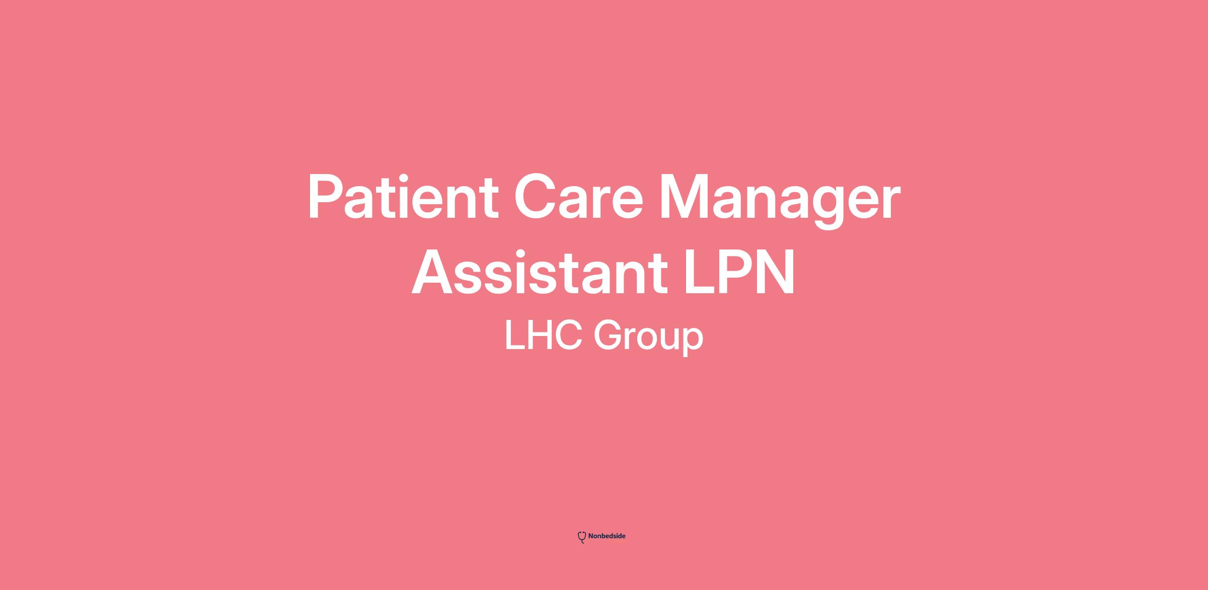 Summary We are hiring for a Patient Care Manager Assistant (LPN).