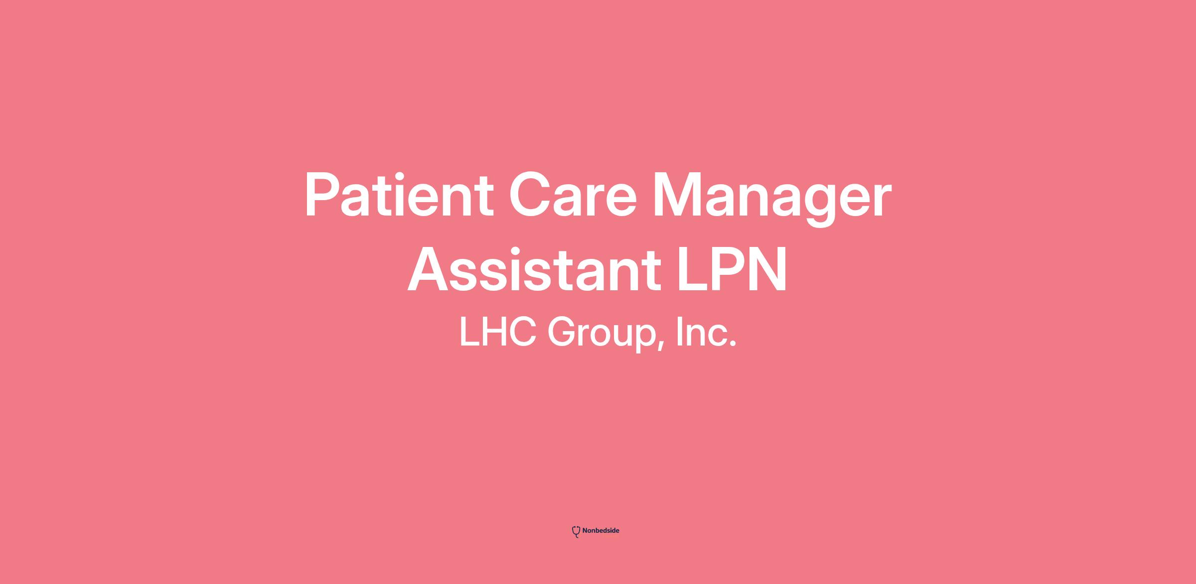 We are hiring for a Patient Care Manager Assistant (LPN).