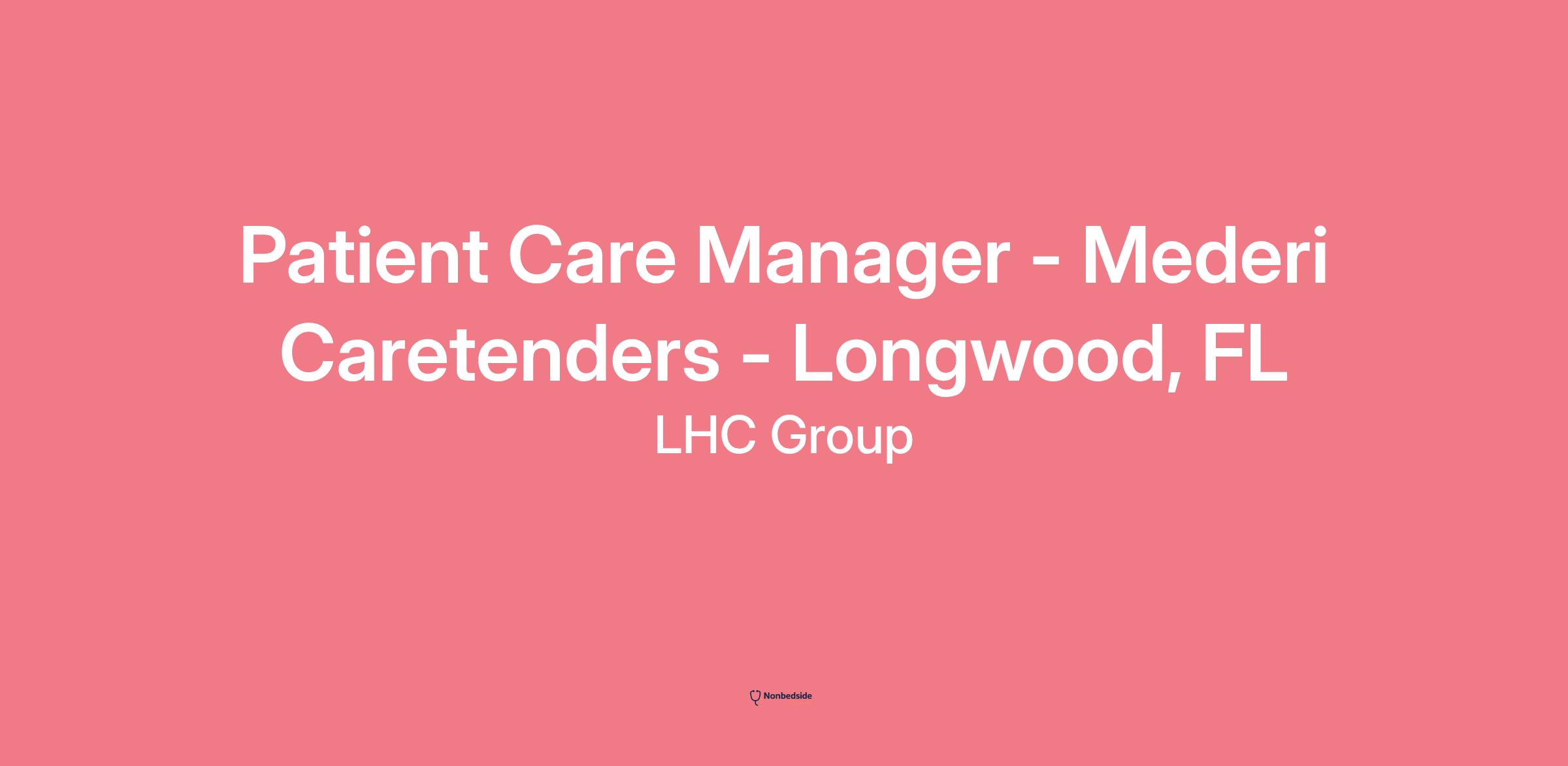 Mederi Caretenders a part of LHC Group family of providers - the preferred post-acute care partner for hospitals, physicians, and families nationwide. We deliver high-quality, cost-effective care that supports our patients when and where they need it. From our home health, hospice, and community-based services to inpatient care at our clinics and hospitals, our mission is to reach more patients and families with effective and efficient healthcare. More hospitals, physicians, and families choose LHC Group because we are united by a single shared purpose: It\'s all about helping people.