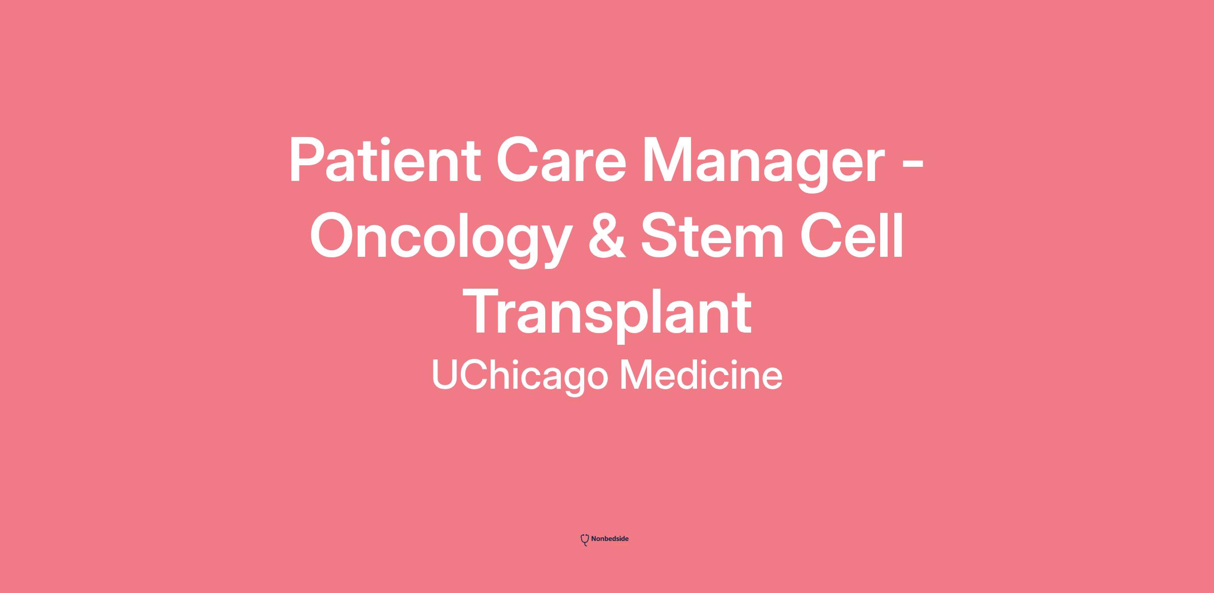 Overview Be a part of a world-class academic healthcare system, University of Chicago Medicine , as a Patient Care Manager on our 40-bed Oncology/Stem Cell Transplant department located on 10E, with additional responsibilities for 11 Infusion beds. This is a unique opportunity that combines oversight for both inpatient and outpatient areas. At UChicago Medicine, we bring the world’s most innovative approaches to patients with all conditions, from common to complex. The University of Chicago Medicine is designated as a Level 1 Adult Trauma Center, meaning the hospital is prepared to handle the most seriously injured trauma patients 24 hours a day, seven days a week. This department is a stem cell transplant unit that has a dedicated, insightful and compassionate team able to care for complex patients with an array of cancer diagnoses.
