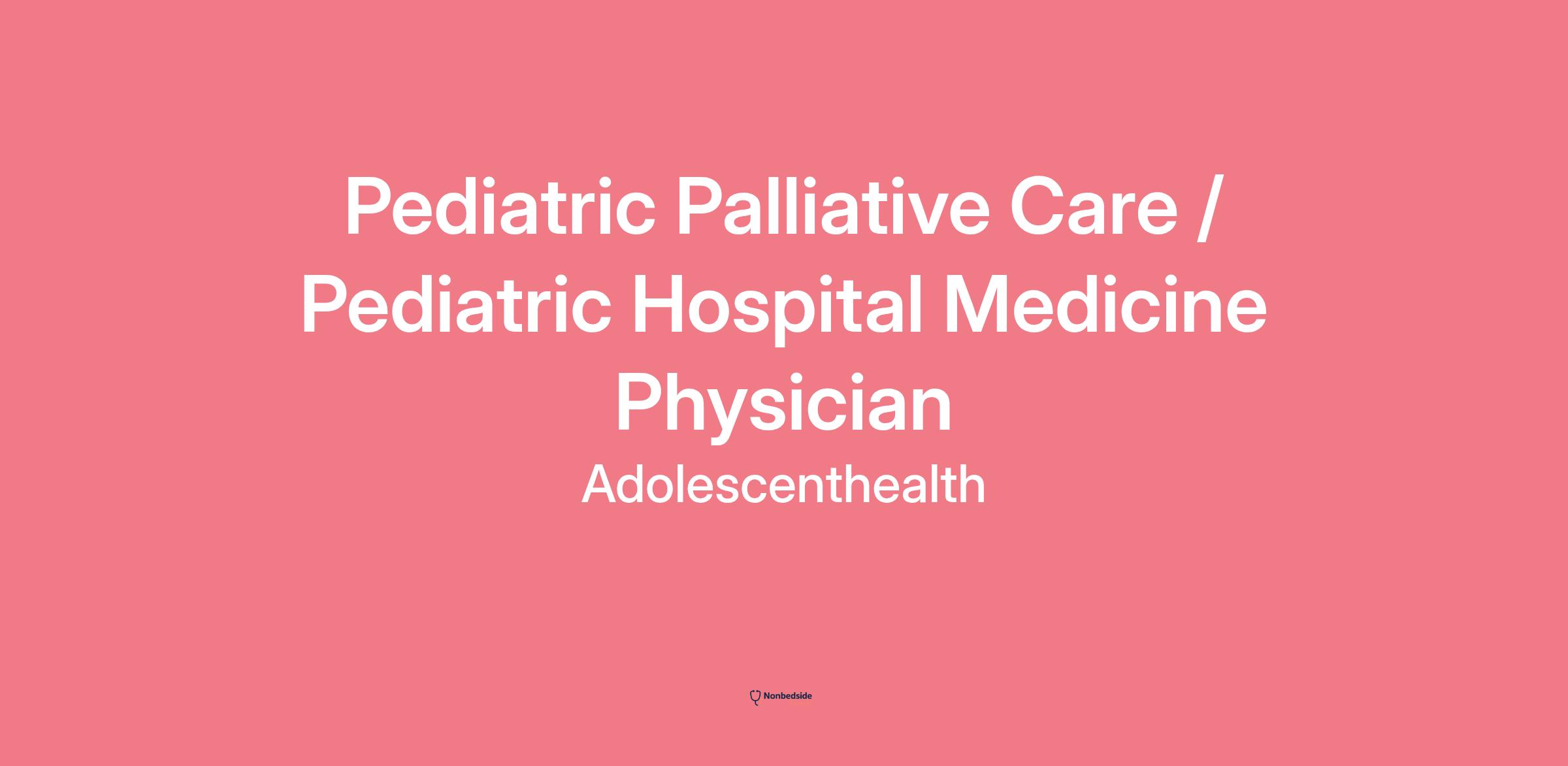 Pediatric Palliative Care / Pediatric Hospital Medicine Physician