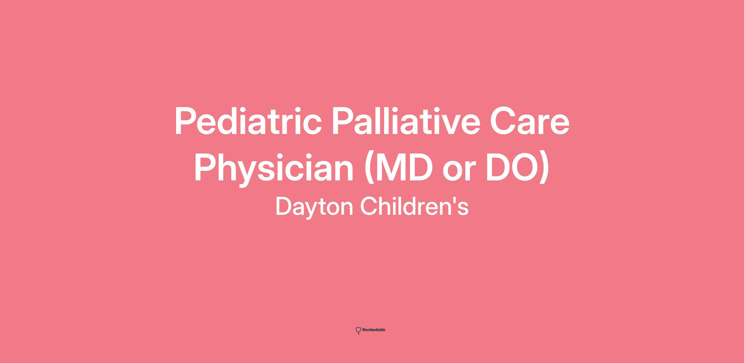 Dayton Children's Hospital, located in Dayton, Ohio, is seeking a dedicated and compassionate pediatric palliative care specialist to join our expanding palliative care team. This full-time position offers the opportunity to be an integral part of our interdisciplinary team, providing exceptional care and support to pediatric patients and their families. We welcome applications from BC/BE pediatric palliative care boarded physicians, as well as CAPC certified physicians with relevant experience. Employment is through Dayton Children's Specialty Physicians and includes a comprehensive and highly competitive compensation and benefit package. The successful candidate must hold or obtain an unrestricted Ohio medical license.