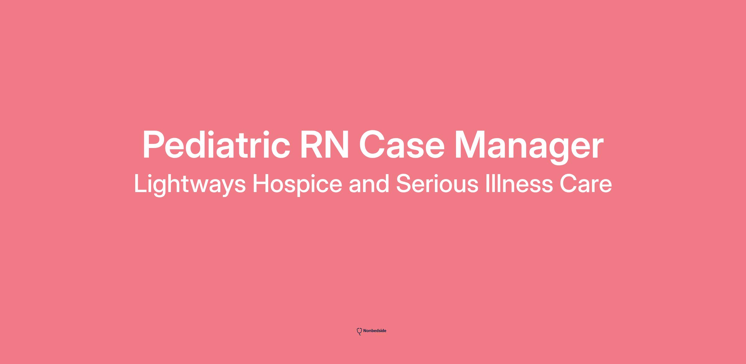 Join to apply for the Pediatric RN Case Manager role at Lightways Hospice and Serious Illness Care .
