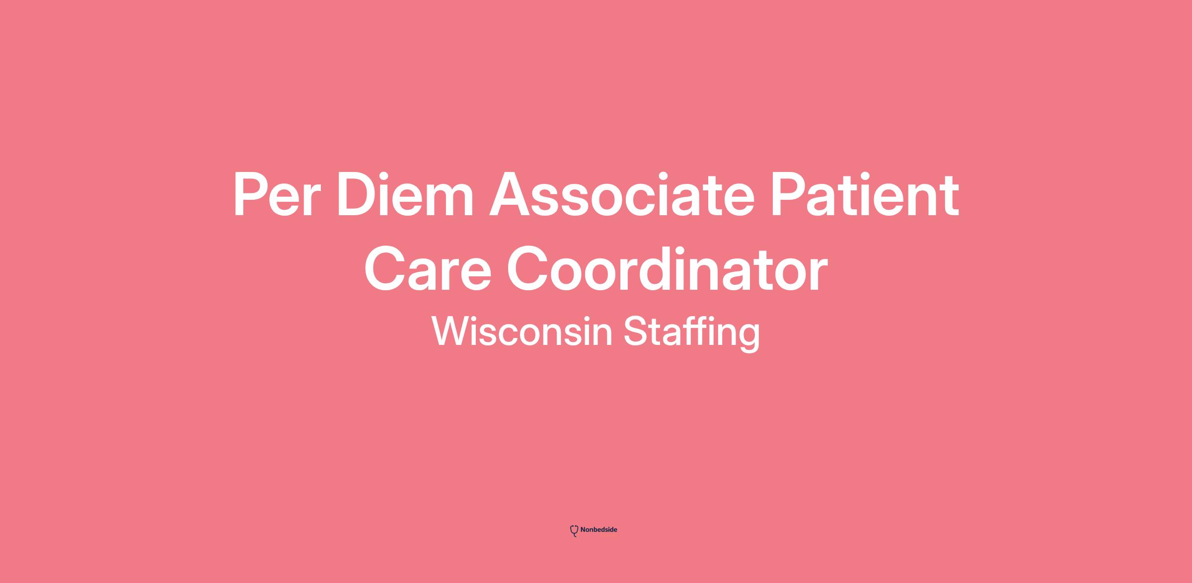The Per Diem Associate Patient Care Coordinator supports patient care delivery in the areas of patient reception, scheduling, insurance verification, payment processing for campuses with hospital and medical group departments.