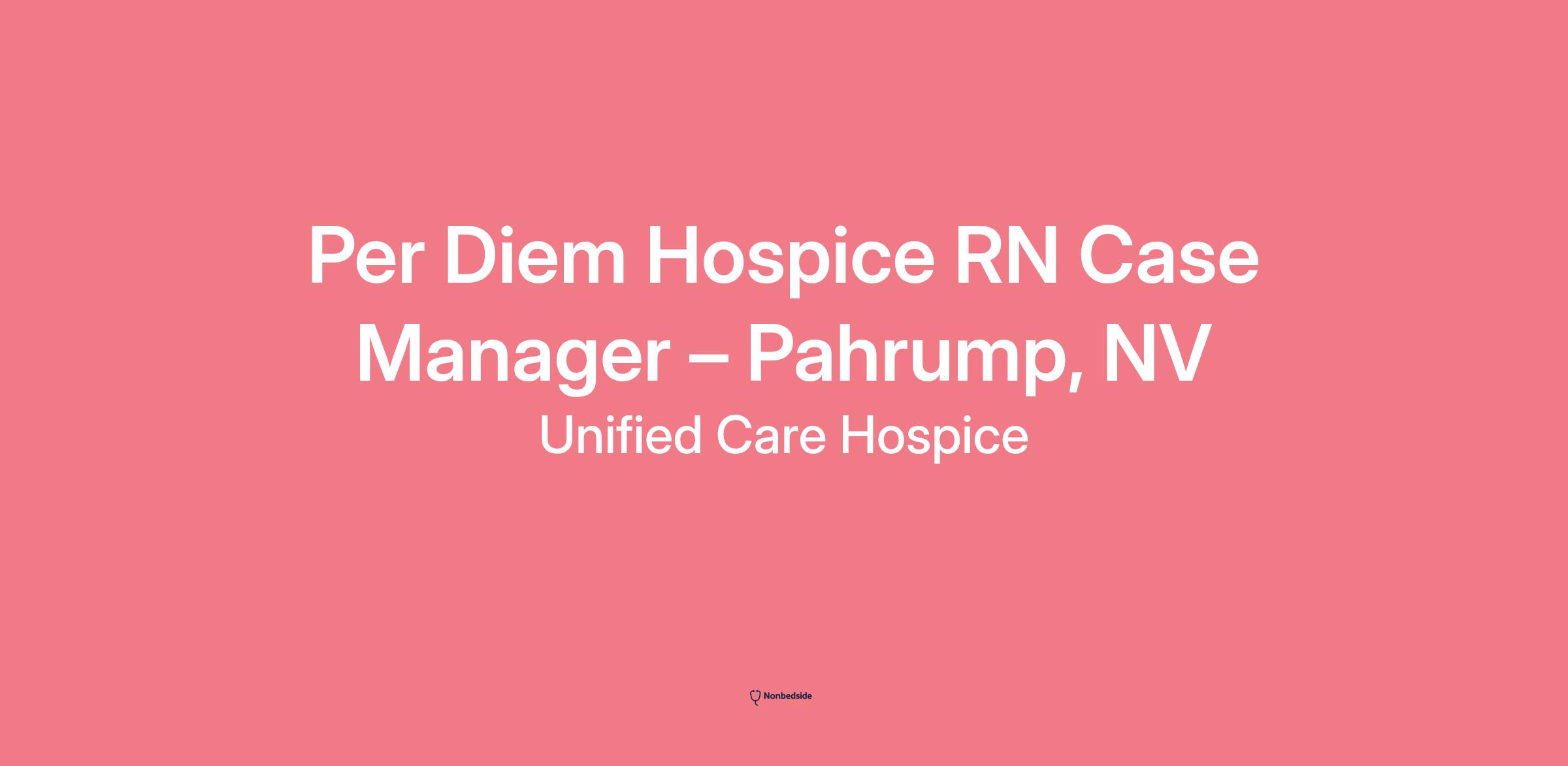 Join to apply for the Per Diem Hospice RN Case Manager – Pahrump, NV role at Unified Care Hospice .