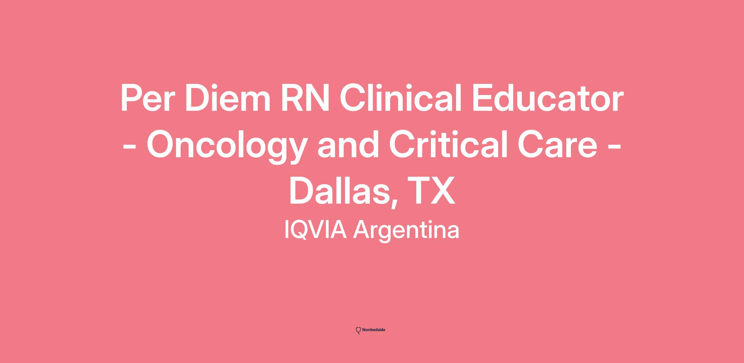 Per Diem RN Clinical Educator - Oncology and Critical Care - Dallas, TX