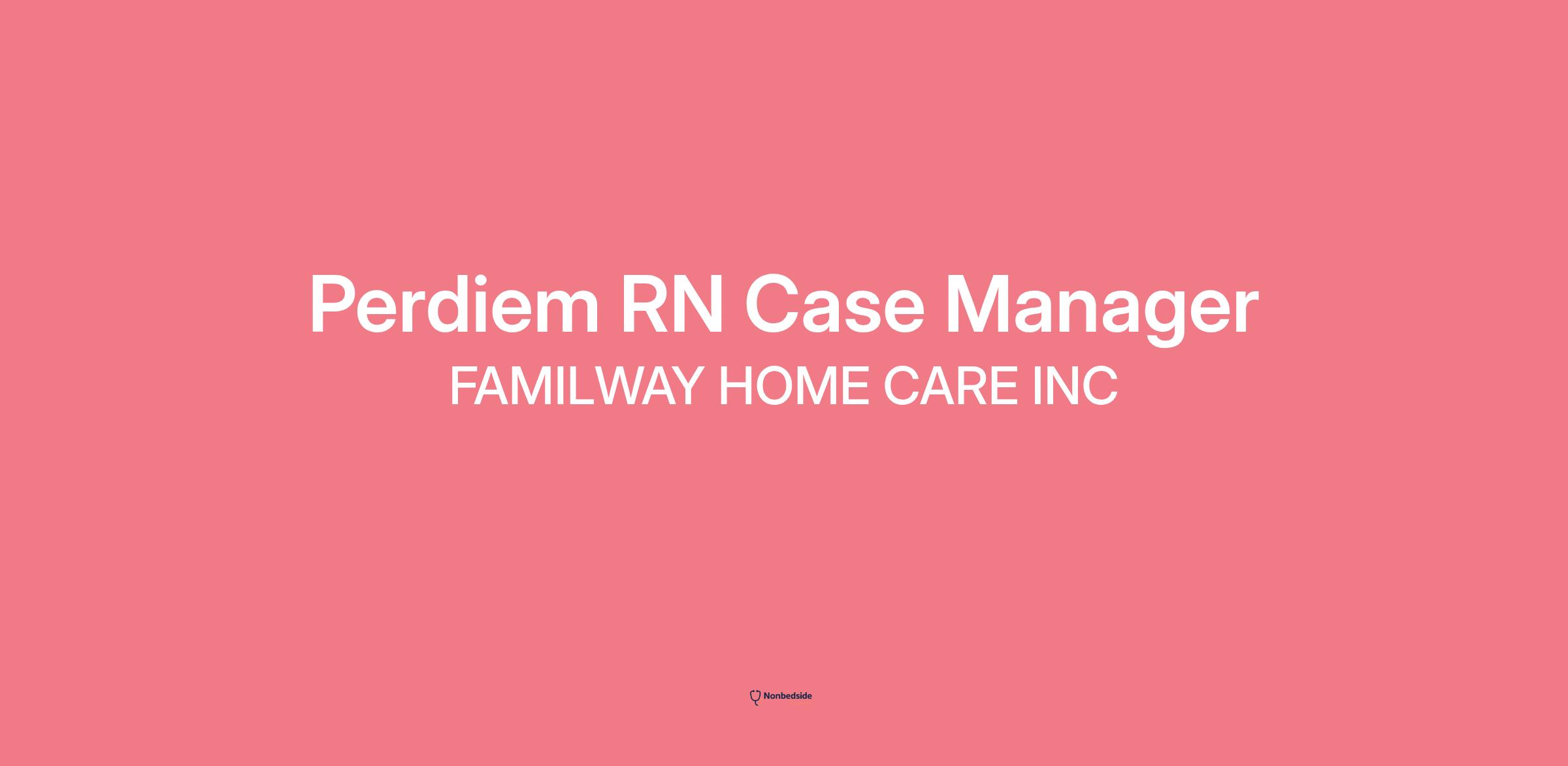 Familyway Home Care is seeking a compassionate and experienced PerdiemCase Manager / Registered Nurse (RN) to join our team. This role is responsible for coordinating patient care, ensuring compliance with state and federal regulations, and providing oversight to home health aids. The Case Manager/RN will serve as the primary point of contact for clients and families, developing and implementing care plans to meet each client's unique needs.