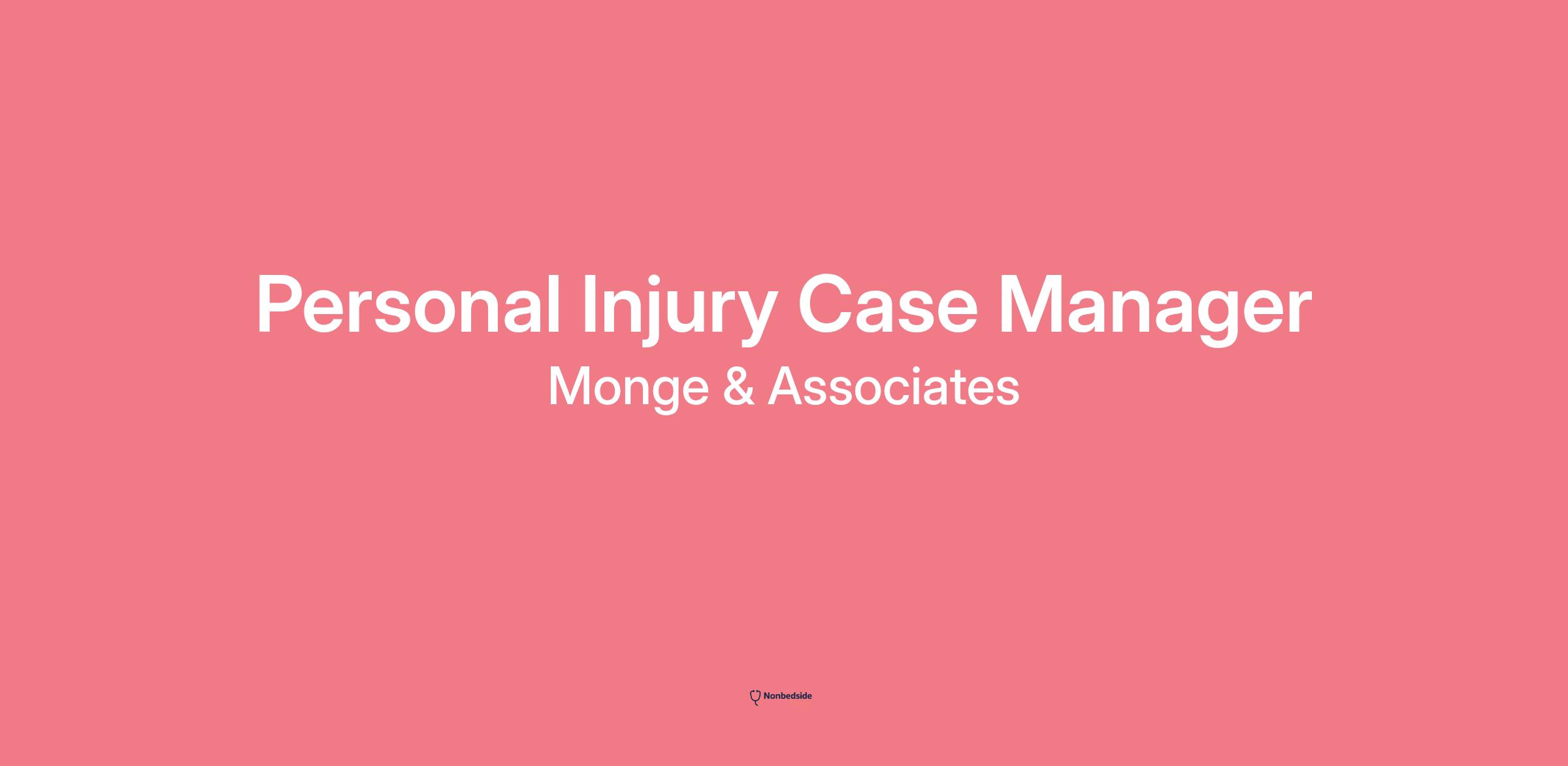 Personal Injury Case Manager: See video: https://youtu.be/zS6wrUkMq58At Monge & Associates, were looking for an experienced case manager to join our personal injury team. The ideal candidate will have experience working with clients who have suffered personal injuries, as well as experience dealing with insurance companies. They will be responsible for managing a caseload of personal injury files from start to finish, including initial client contact, investigation, negotiation, and settlement. They will also be responsible for maintaining regular communication with clients, insurance adjusters, and opposing counsel. We are Recognized as a Top Places to Work, One of the Most Influential Firms in America, and Voted Best Lawyers. Duties & Responsibilities: