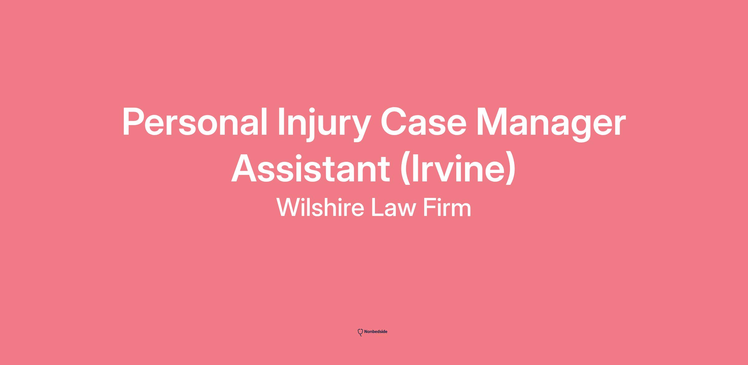 Case Manager Assistant - Personal Injury (Irvine)Wilshire Law Firm is a distinguished, award-winning legal practice with over 18 years of experience, specializing in Personal Injury, Employee Rights, and Consumer Class Action lawsuits. We are dedicated to upholding the highest standards of Excellence and Justice and are united in our commitment to achieve the best outcome for our clients.