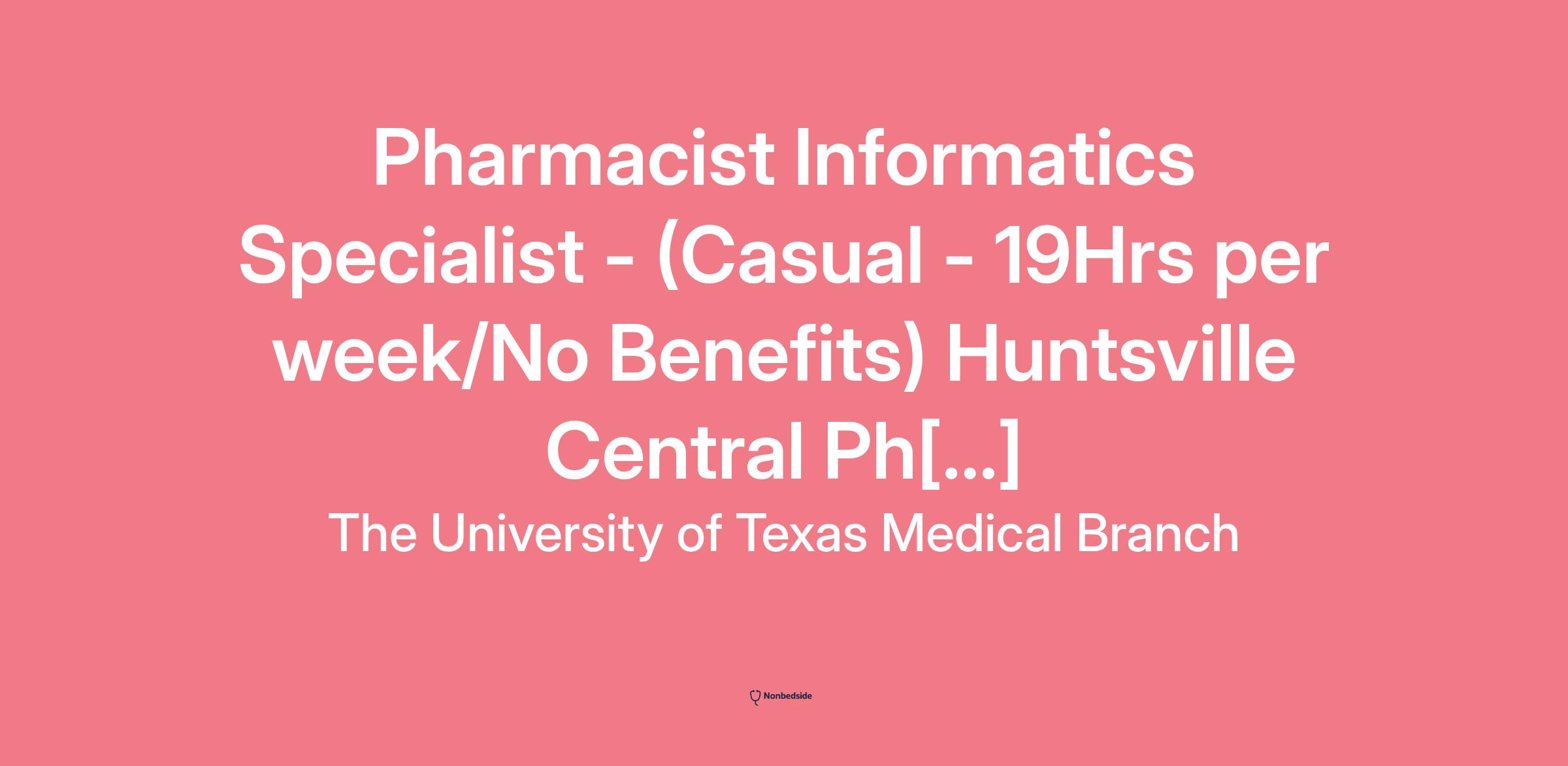 Overview Pharmacist Informatics Specialist - (Casual - 19Hrs per week/No Benefits) Huntsville Central Pharmacy