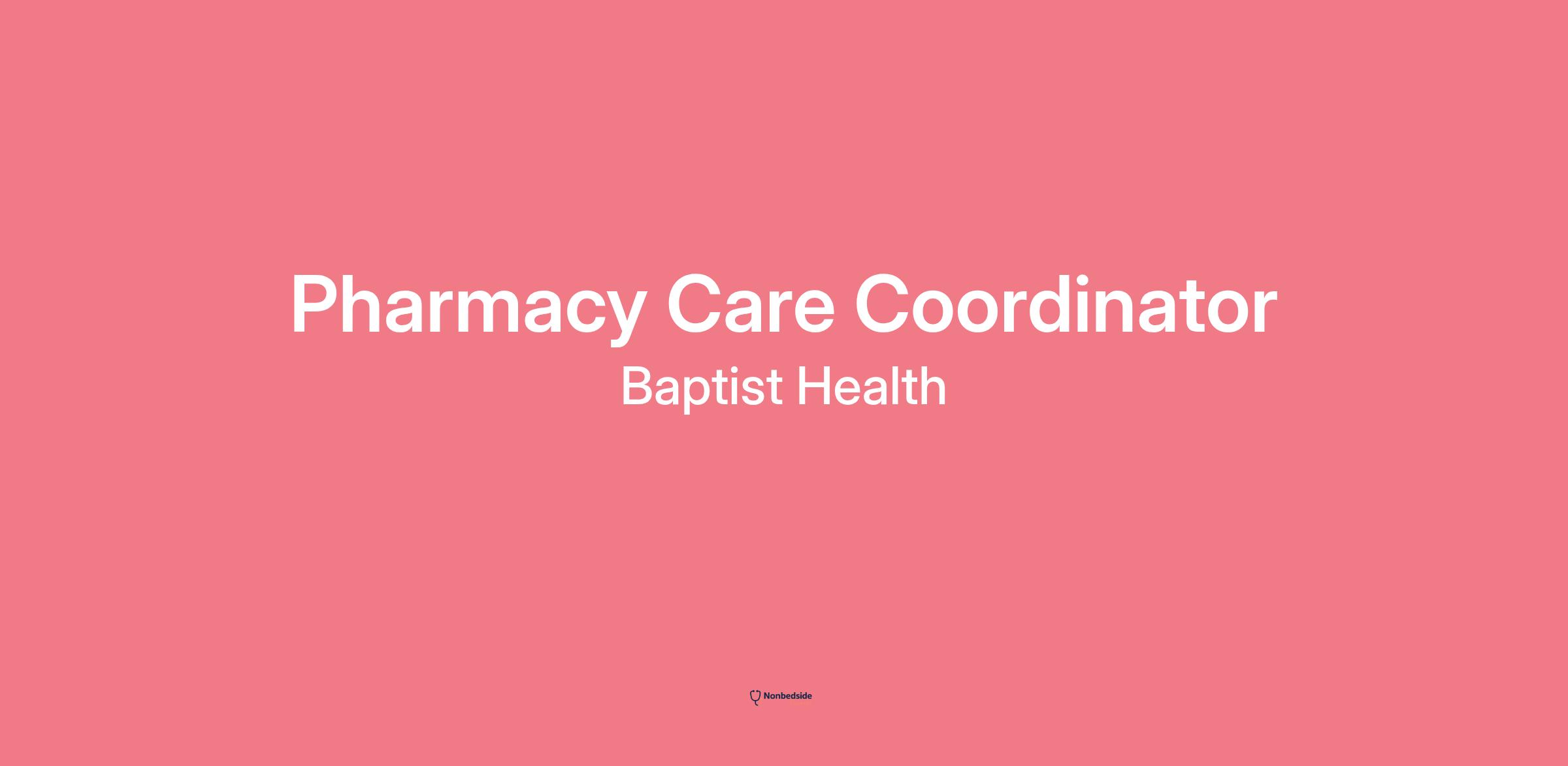Baptist Health is looking for a Pharmacy Care Coordinator to join our team at our Baptist Health Corbin retail pharmacy.